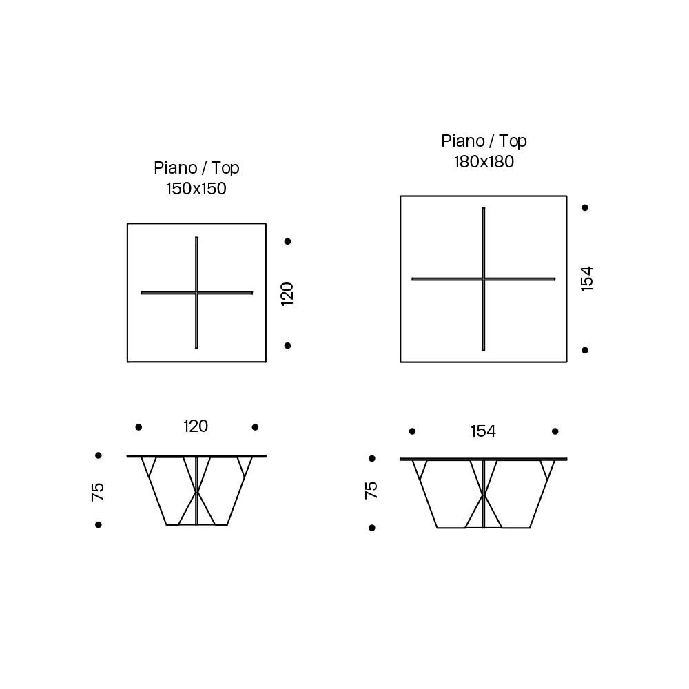 - L 150 x P 150 x H 75 cm;