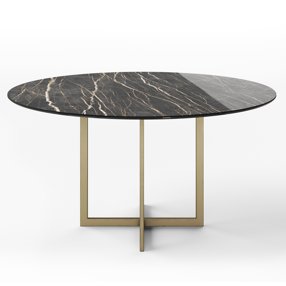 Mesa de jantar redonda em porcelanato e metal Made in Italy.