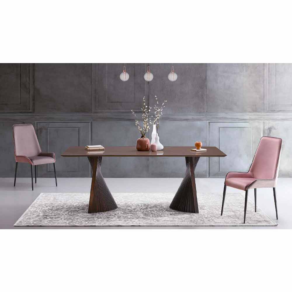 mesa de jantar é, sem dúvida, uma solução de mobiliário impressionante, sobretudo graças ao design particular da base, original e extremamente elegante.