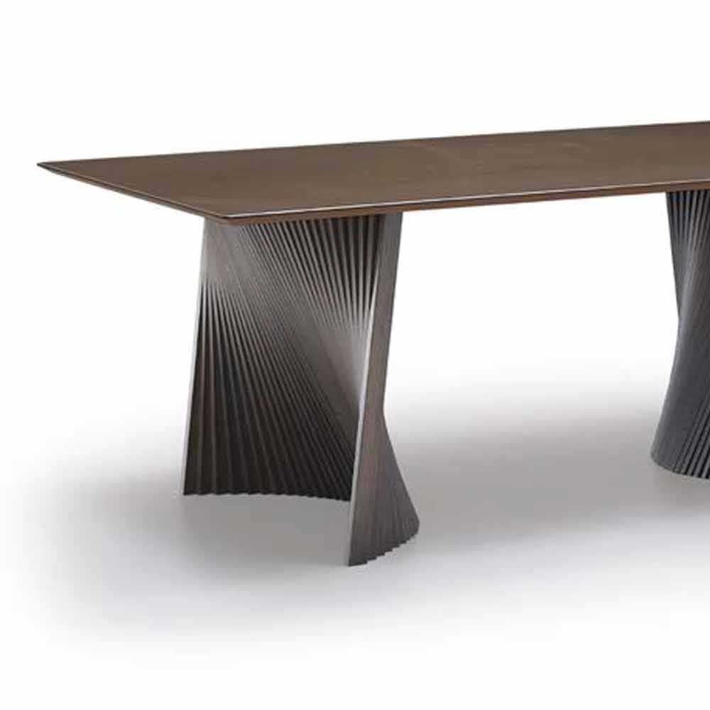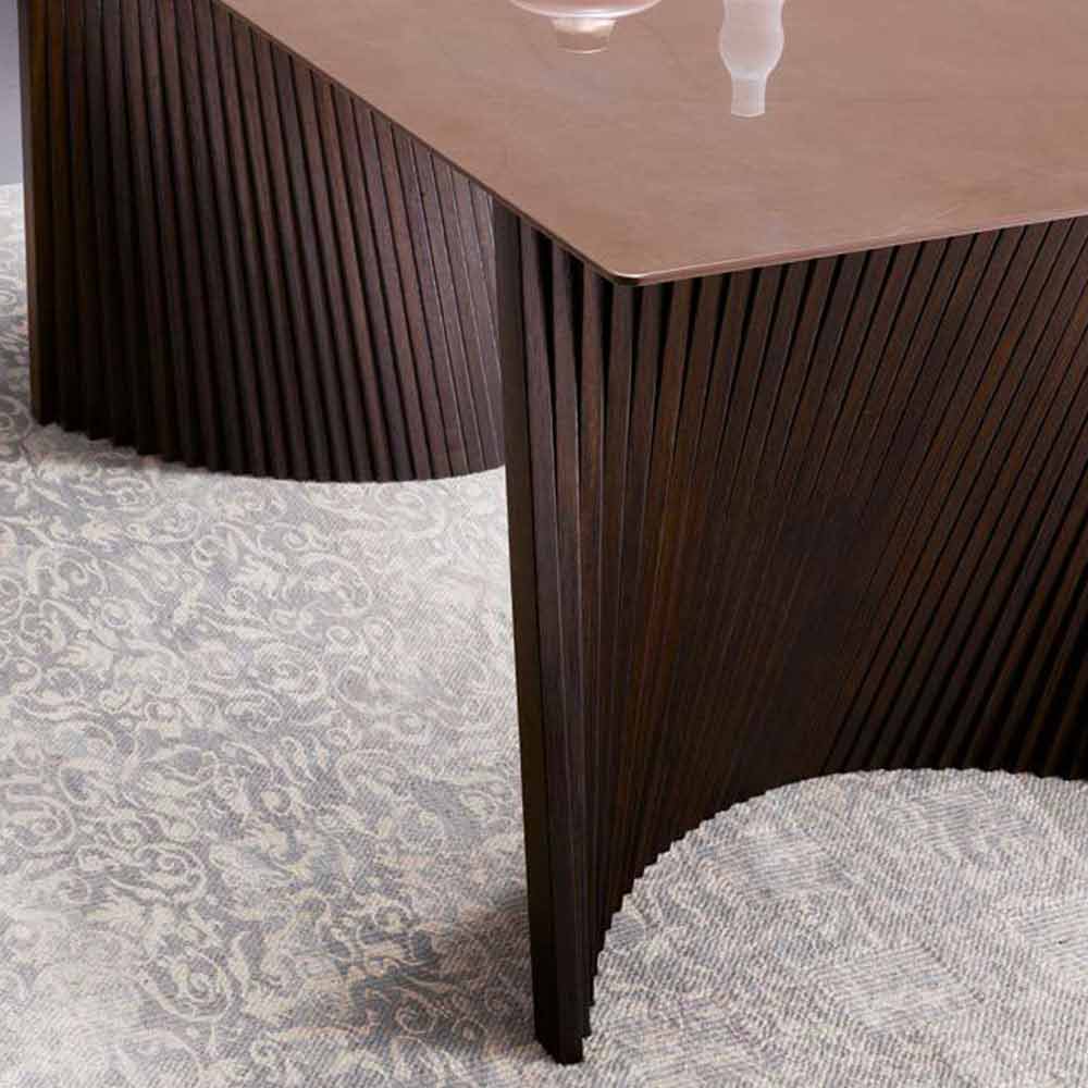 Mesa de jantar com tampo em grés e pés em madeira de freixo, produto de luxo Made in Italy.