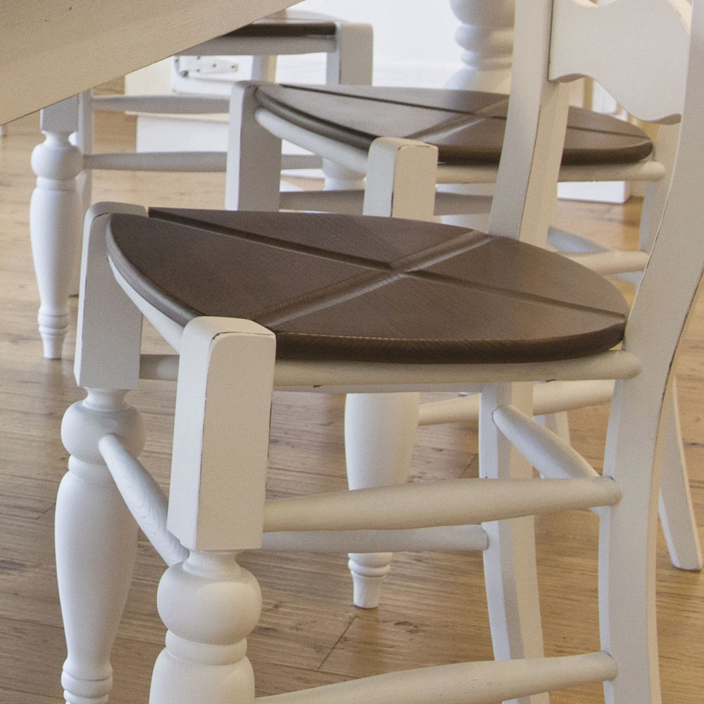 Mesa extensível para interior em freixo escovado na cor da lareira com cantos recortados . As pernas lacadas cor de espinheiro "efeito gasto" são torneadas em madeira maciça e conectadas entre si por uma faixa de madeira maciça. O produto é inteiramente feito na Toscana com o uso de materiais de alta qualidade e vem com 2 extensões de 50 cm cada que o tornam versátil .