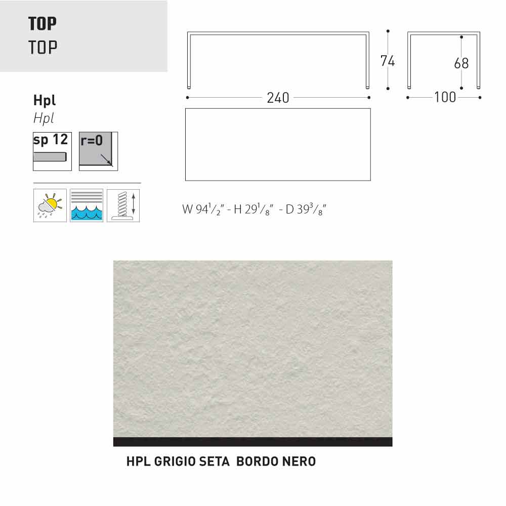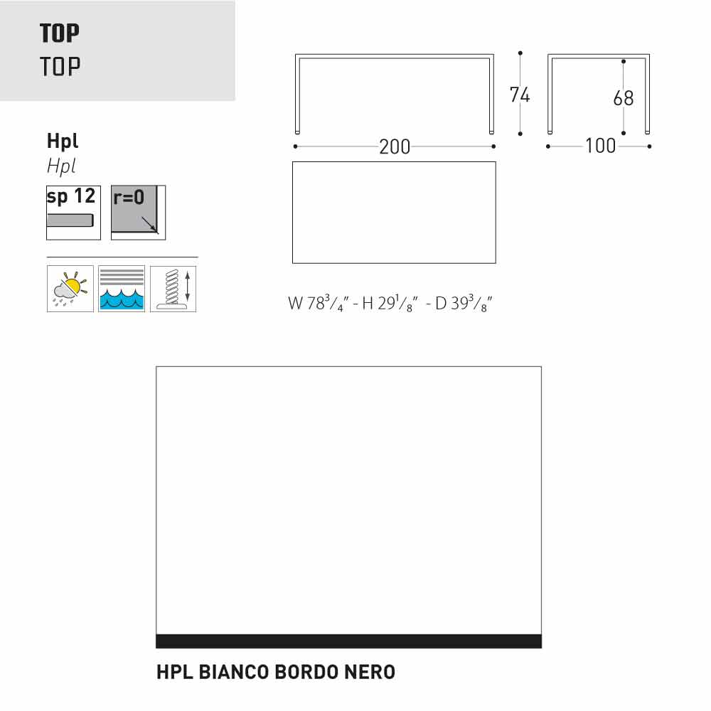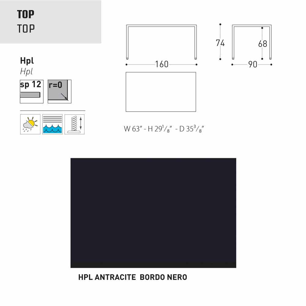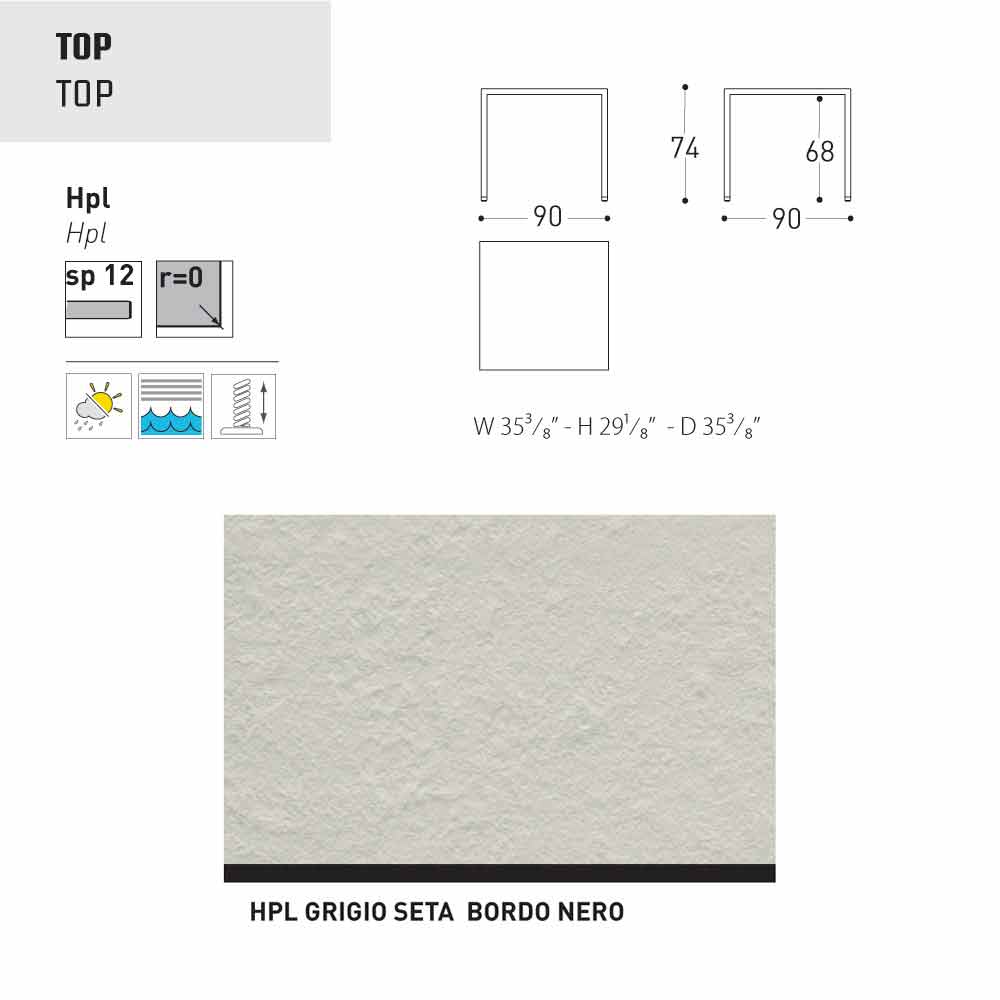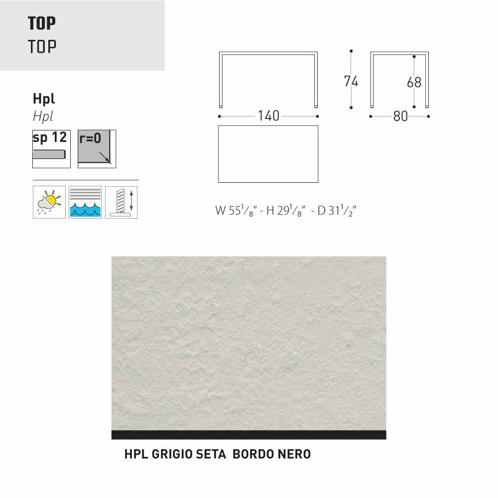 Recursos técnicos HPL : Laminados de alta pressão. Eles são feitos de várias camadas de papel (70%) impregnadas com resinas termofixas (30%) e compactadas por cerca de 45-50 minutos através da ação combinada de calor (a cerca de 150 graus) e alta pressão (superior a 7 MPa / Megapascal por metro quadrado.) O resultado é um produto estável, não reativo, não poroso e de alta densidade. Possui características físicas e químicas de alta resistência mecânica (excursão de temperatura controlada + 80 / -40 graus, por menos de 30 segundos em temperaturas extremas). Resiste à exposição à luz e variações de temperatura, mesmo em ambientes marinhos.