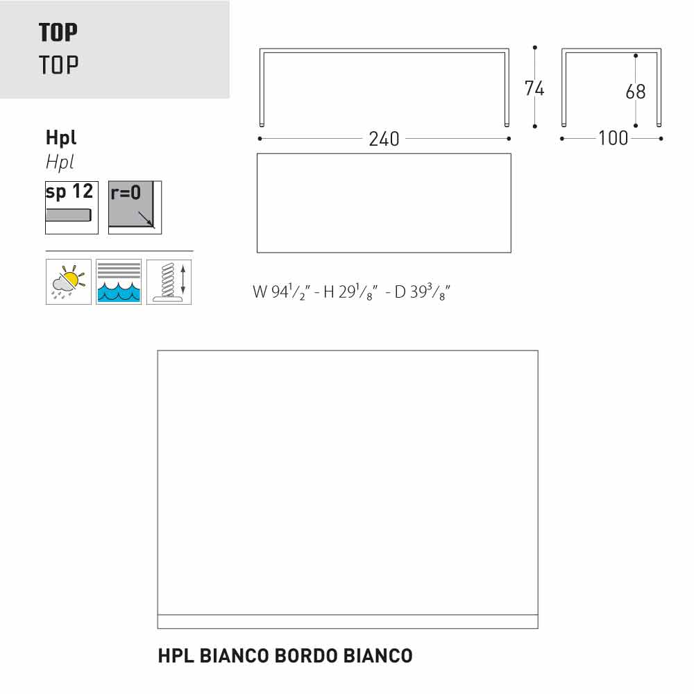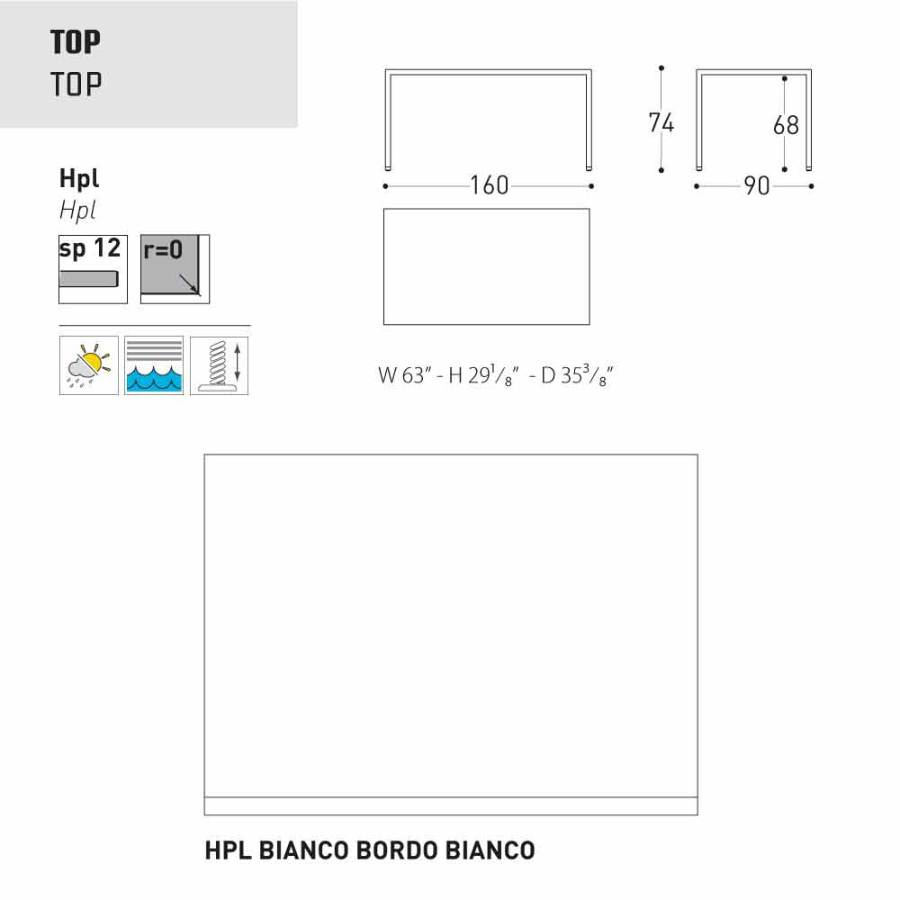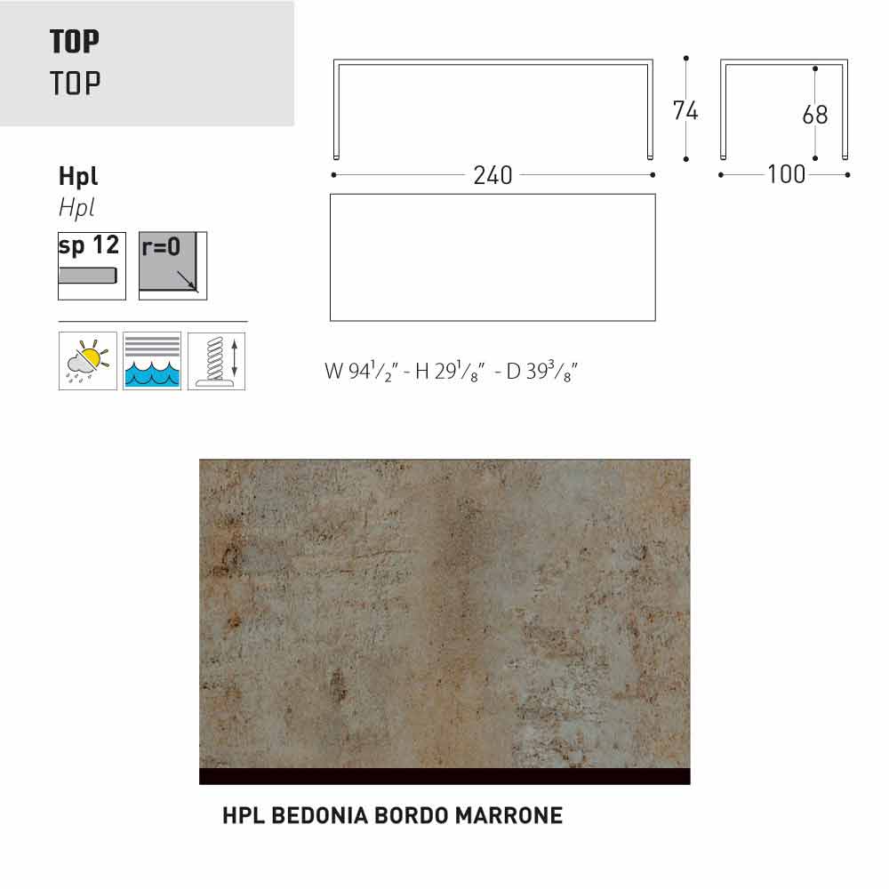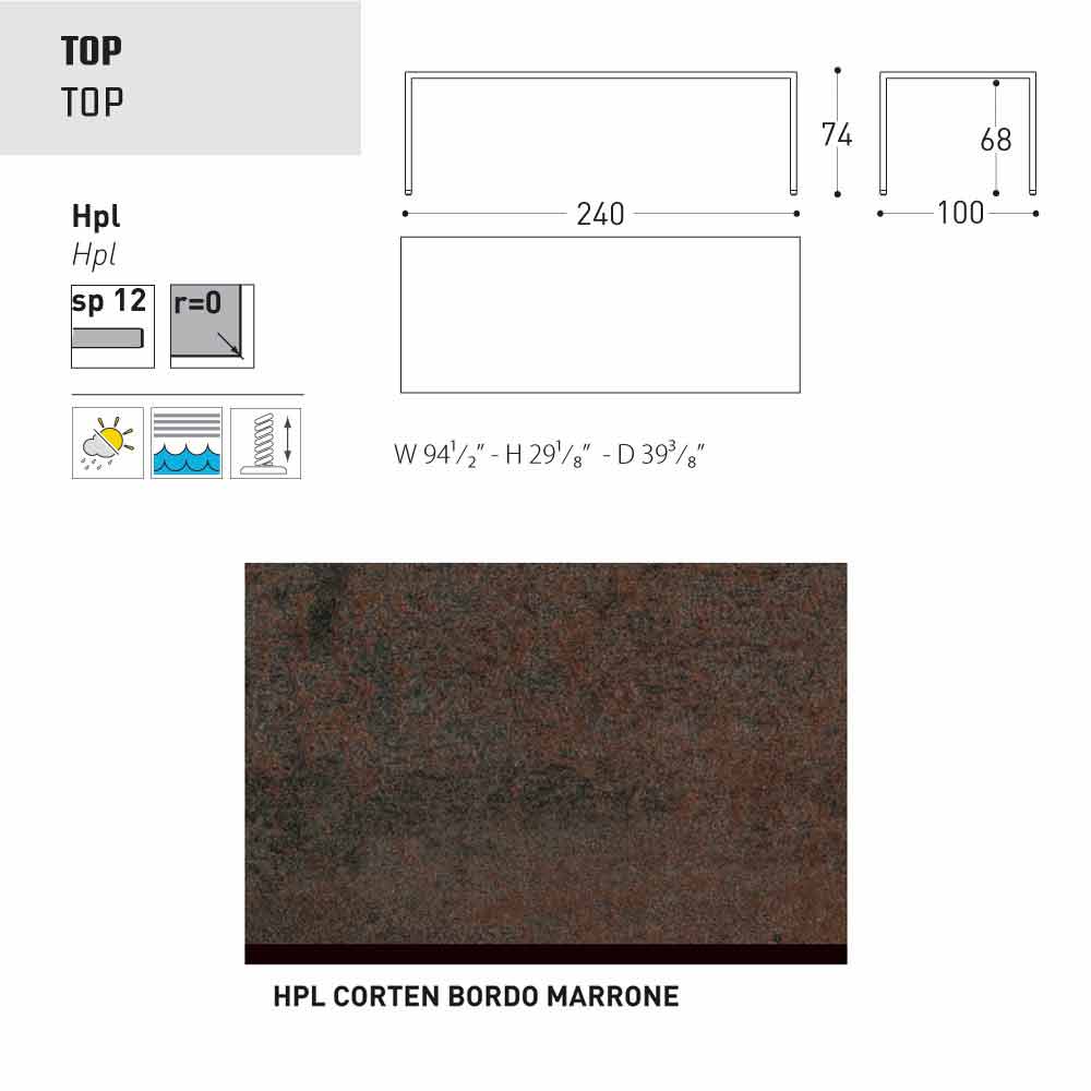 Recursos técnicos HPL : Laminados de alta pressão. Eles são feitos de várias camadas de papel (70%) impregnadas com resinas termofixas (30%) e compactadas por cerca de 45-50 minutos através da ação combinada de calor (a cerca de 150 graus) e alta pressão (superior a 7 MPa / Megapascal por metro quadrado.) O resultado é um produto estável, não reativo, não poroso e de alta densidade. Possui características físicas e químicas de alta resistência mecânica (excursão de temperatura controlada + 80 / -40 graus, por menos de 30 segundos em temperaturas extremas). Resiste à exposição à luz e variações de temperatura, mesmo em ambientes marinhos.