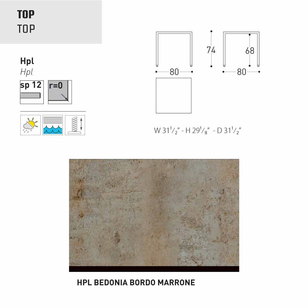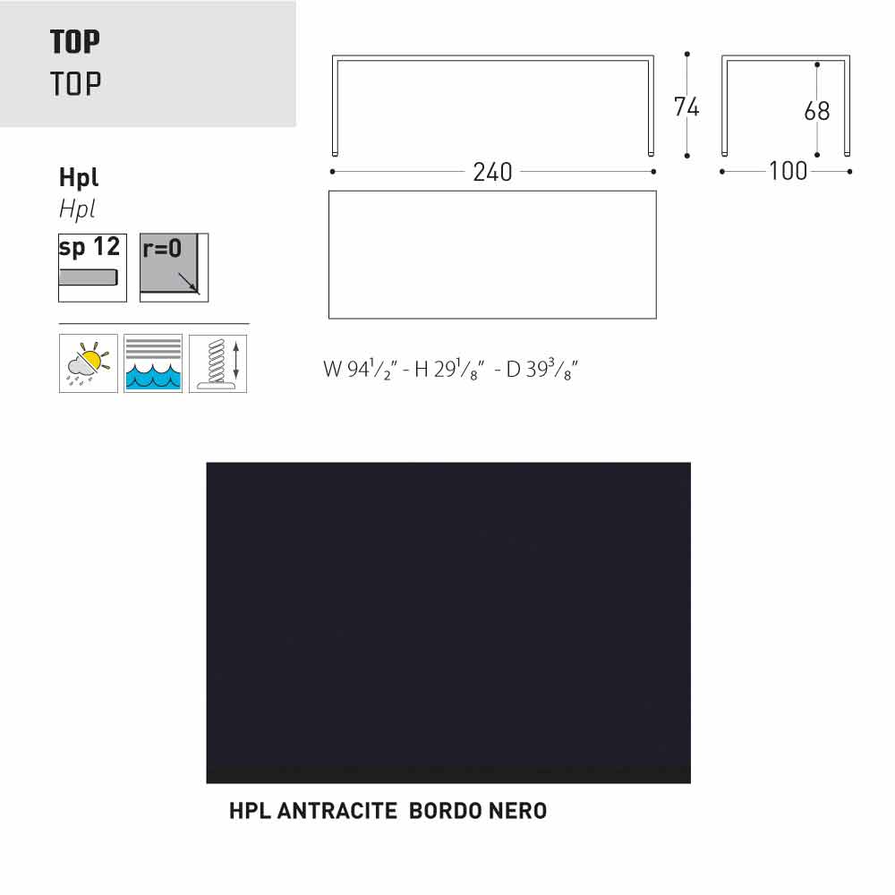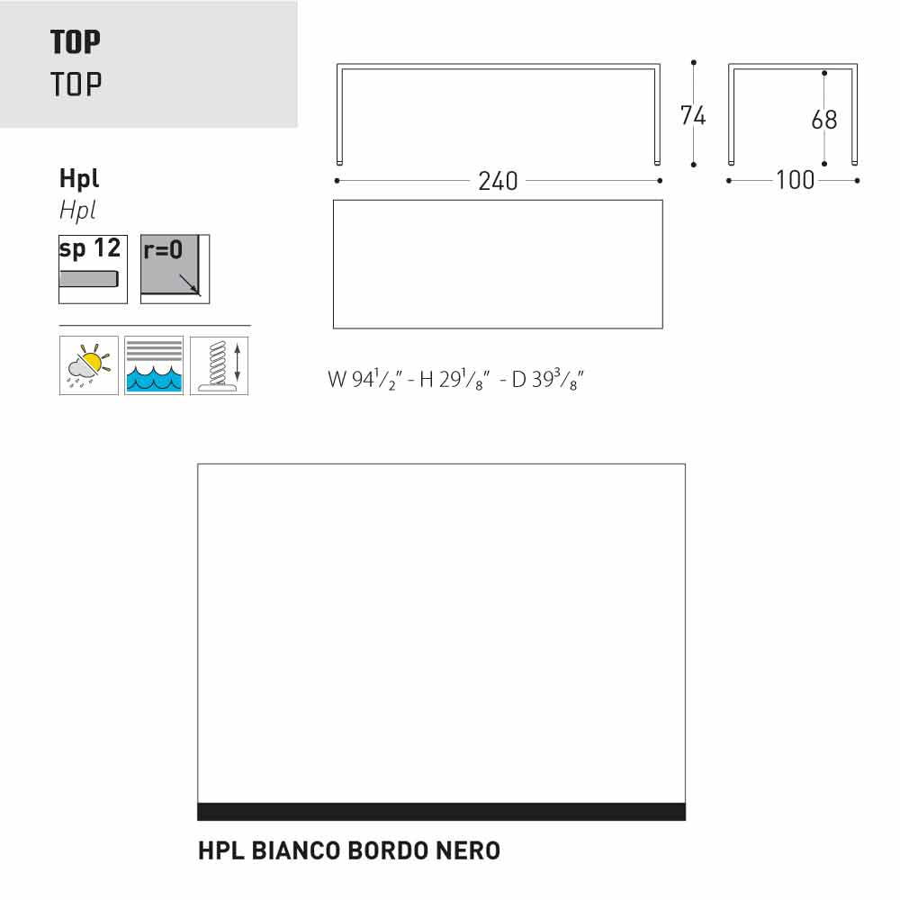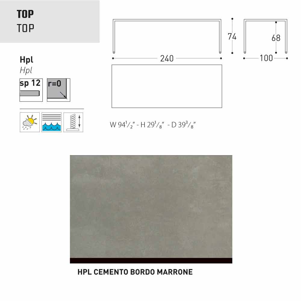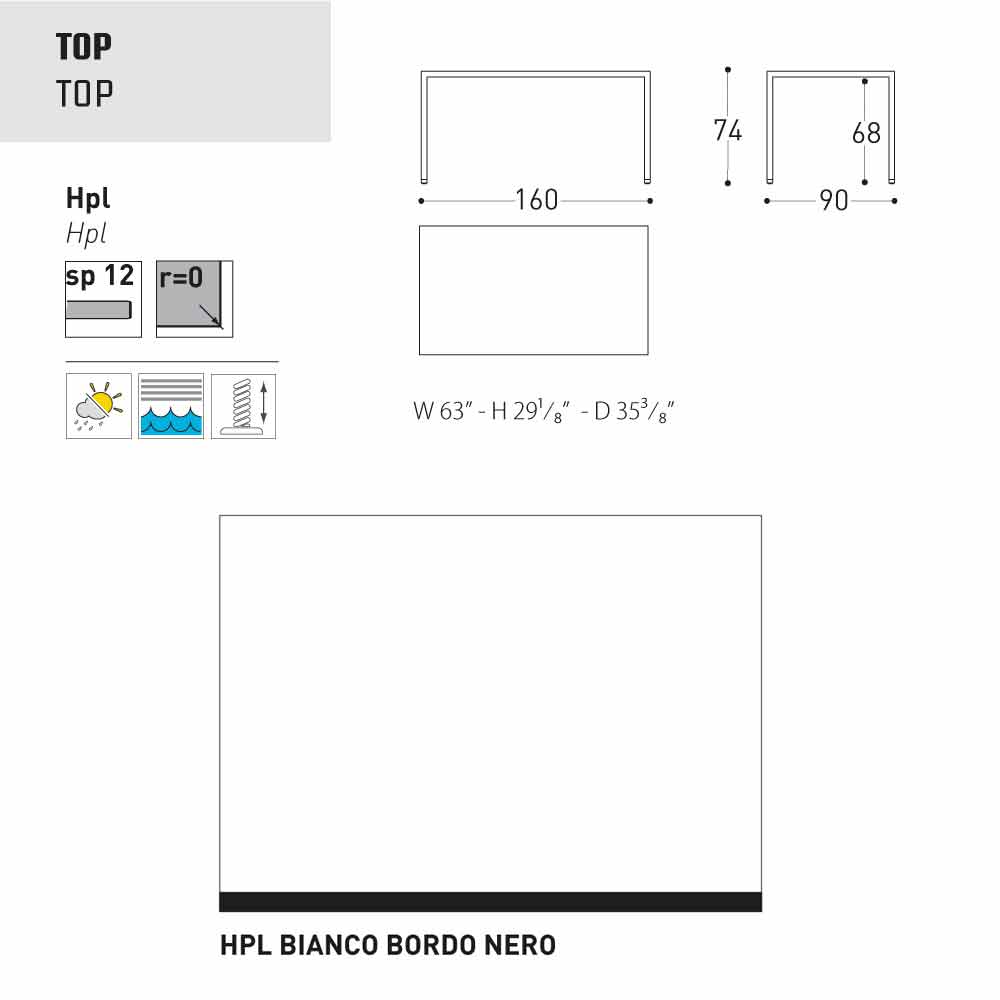 Recursos técnicos HPL : Laminados de alta pressão. Eles são feitos de várias camadas de papel (70%) impregnadas com resinas termofixas (30%) e compactadas por cerca de 45-50 minutos através da ação combinada de calor (a cerca de 150 graus) e alta pressão (superior a 7 MPa / Megapascal por metro quadrado.) O resultado é um produto estável, não reativo, não poroso e de alta densidade. Possui características físicas e químicas de alta resistência mecânica (excursão de temperatura controlada + 80 / -40 graus, por menos de 30 segundos em temperaturas extremas). Resiste à exposição à luz e variações de temperatura, mesmo em ambientes marinhos.