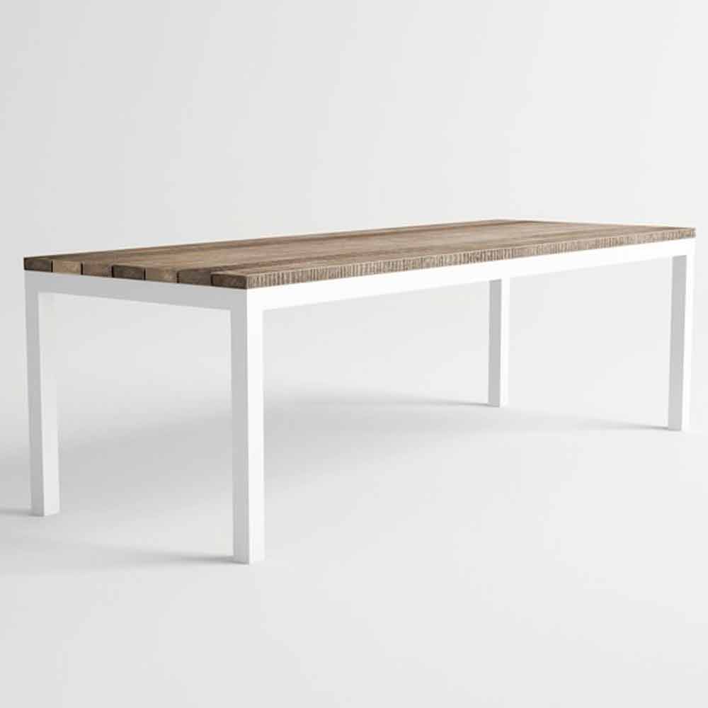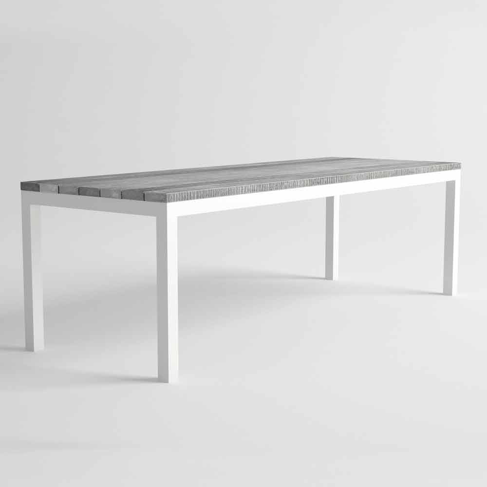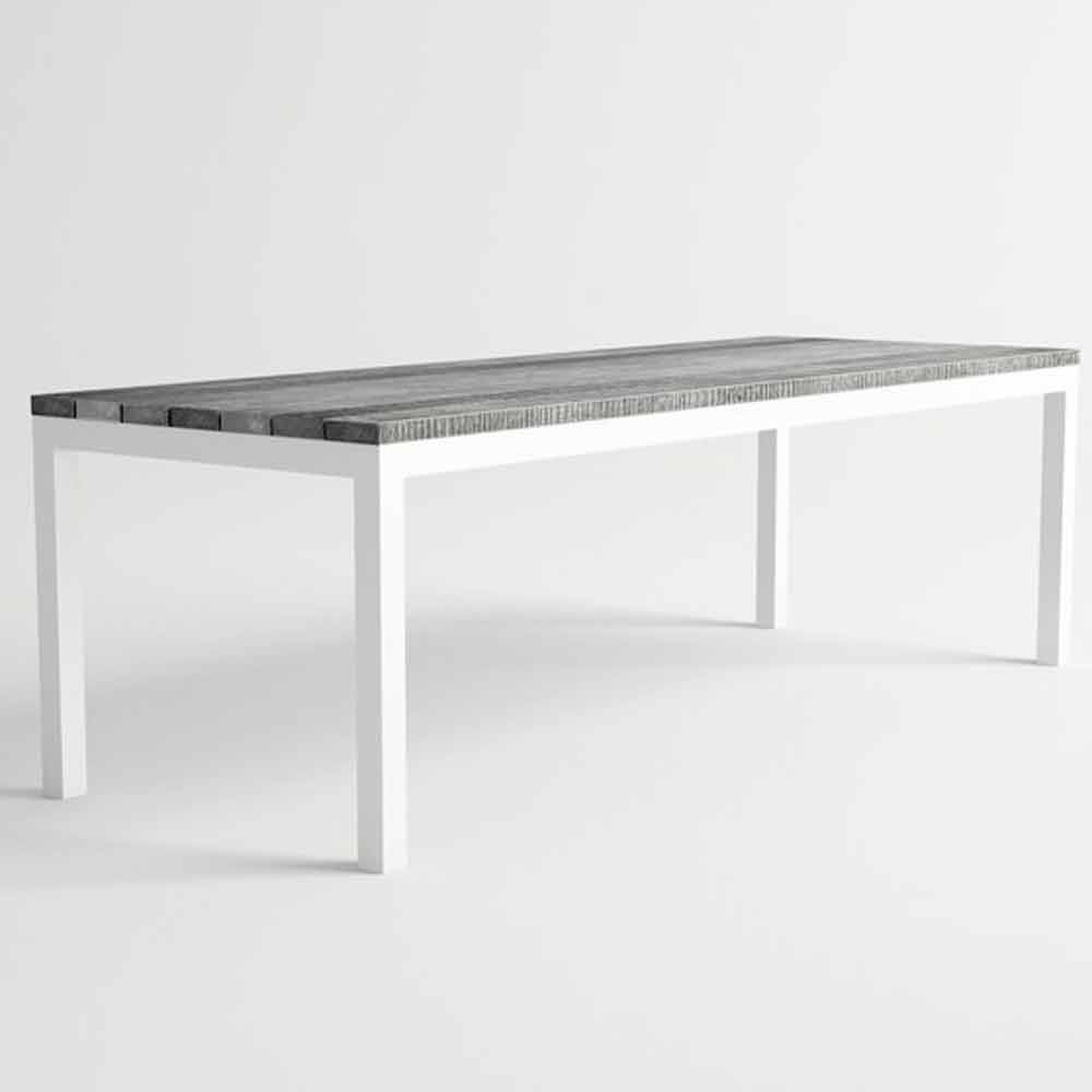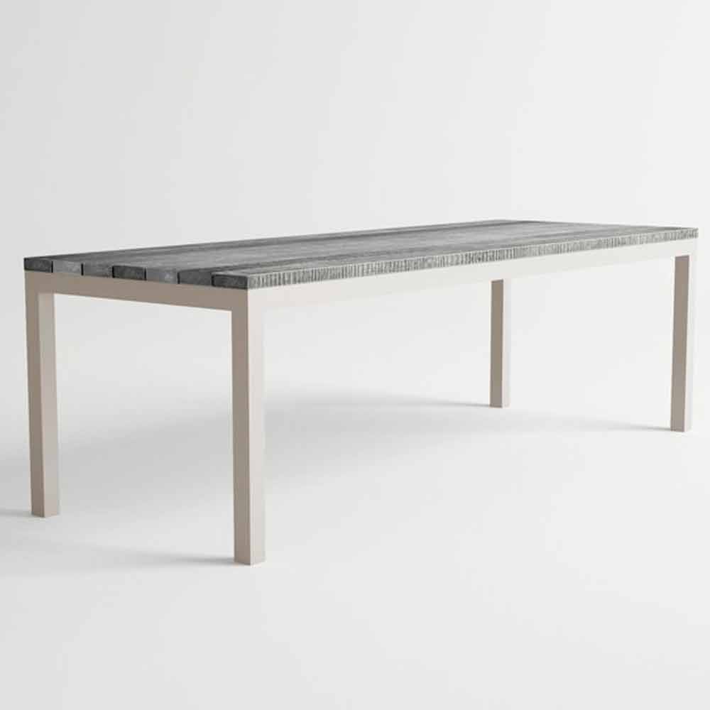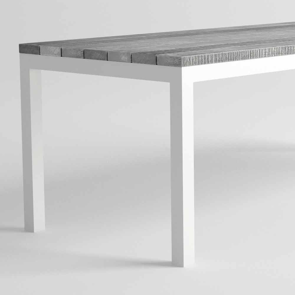 Mesa de jardim de design moderno, estrutura em alumínio e madeira, disponível em cores diferentes.