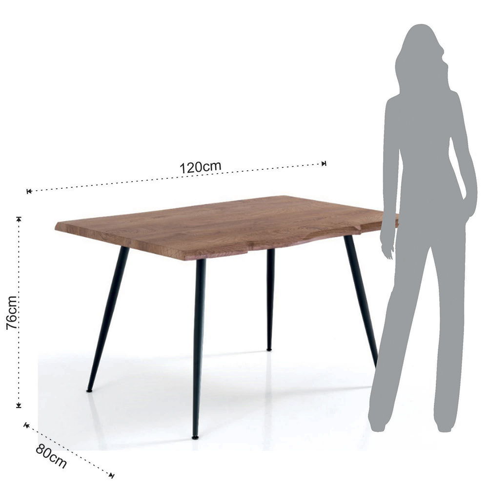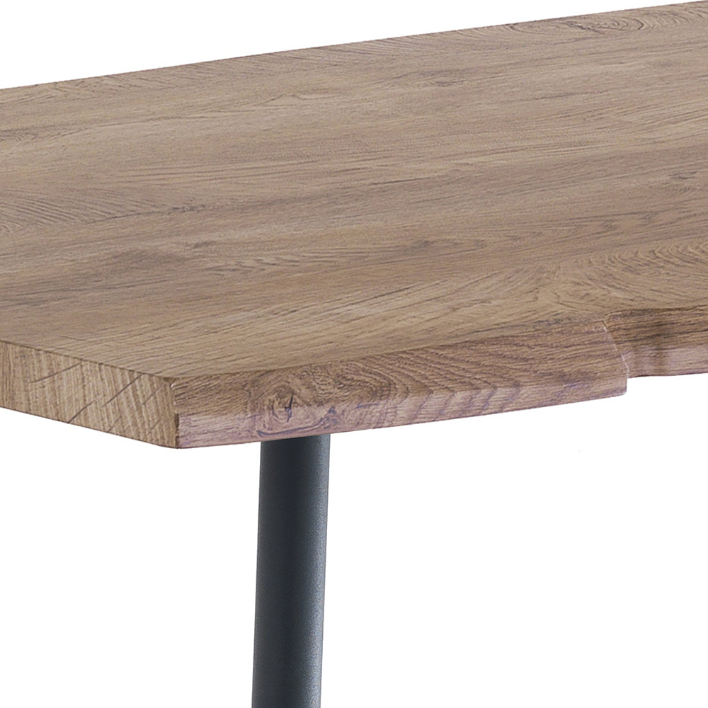 Mesa de jantar com tampo em MDF revestido a carvalho acabamento melamina (espessura 3,3cm) e pés reguláveis em aço pintado de preto mate . Um design minimalista e moderno concebido para mobilar de forma essencial qualquer espaço habitacional, trazendo consigo funcionalidade e elegância . A combinação de acabamentos e materiais escolhidos enriquece o produto com personalidade e permite-lhe garantir solidez, estabilidade e excelente durabilidade . O resultado é, portanto, uma mesa de jantar vanguardista caracterizada por uma notável versatilidade de utilização, capaz de completar com personalidade qualquer situação doméstica ou contratual.