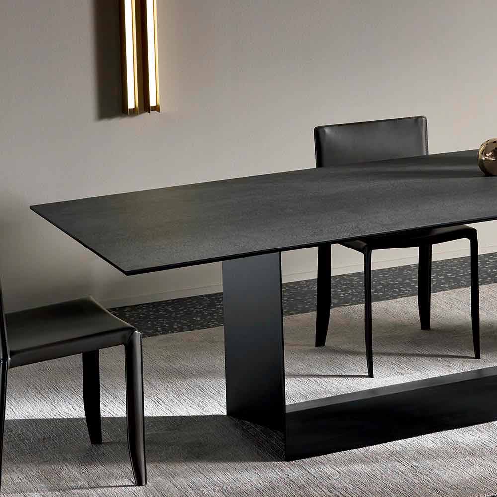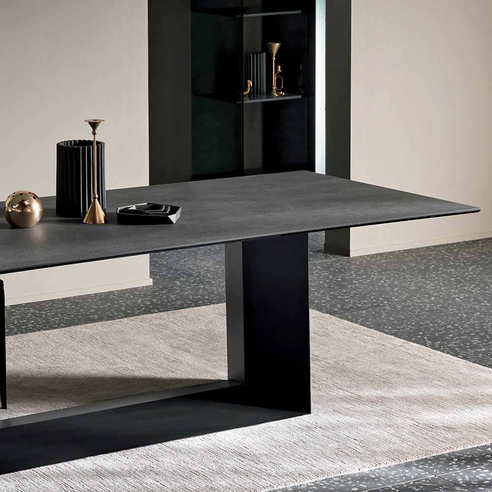 Mesa de luxo em cerâmica fosca antracite Savoy e base de metal em grafite preto, fabricada na Itália.