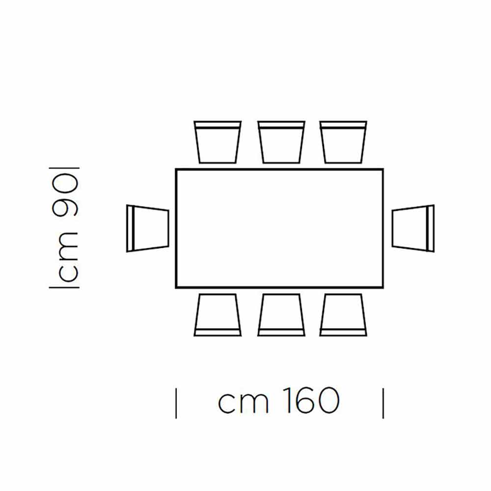 - C 160 x P 90 x A 75,5 cm (8 lugares);