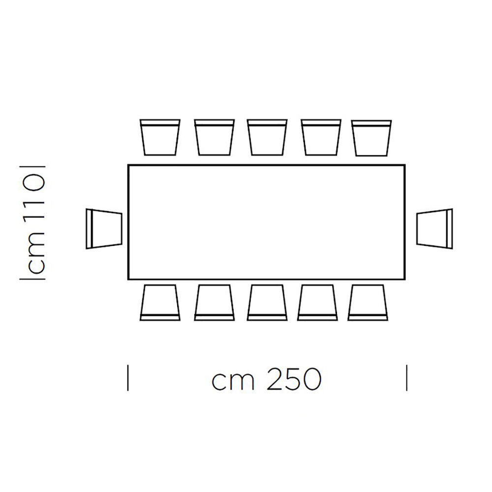 - C 250 x P 110 x A 75,5 cm (12 lugares).