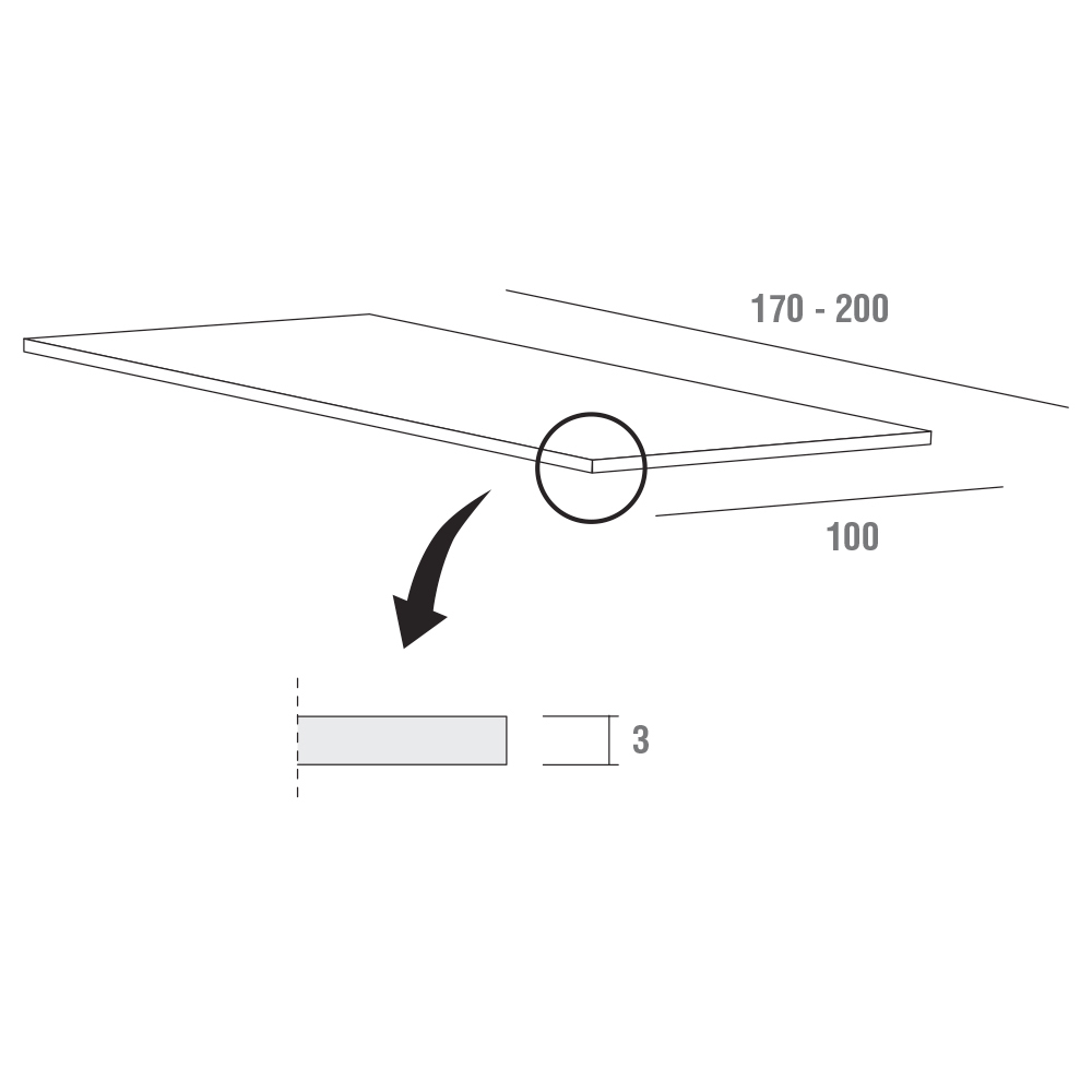 - L 200 x P 100 x A 76cm.
