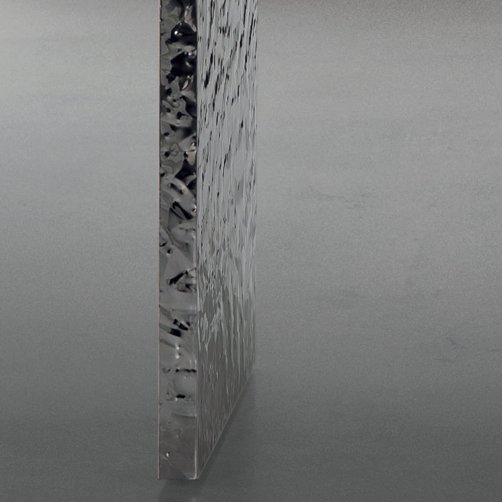 base de aço martelado. Disponível em diferentes tamanhos e acabamentos para o tampo: