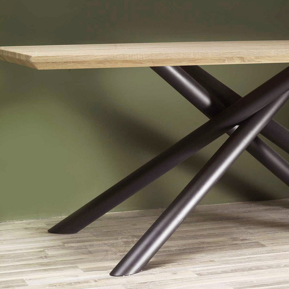 Esta mesa de design contemporâneo é a combinação perfeita entre elegância e funcionalidade . A estrutura metálica revestida a pó preto garante uma base resistente e estável, reforçada pelas linhas geométricas das pernas cruzadas, que dão à mesa um toque de estilo industrial refinado.