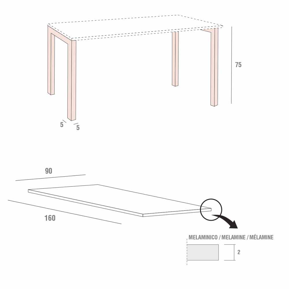 Mesa de jantar em melamina com estrutura metálica lacada a branco Fabricado na Itália.