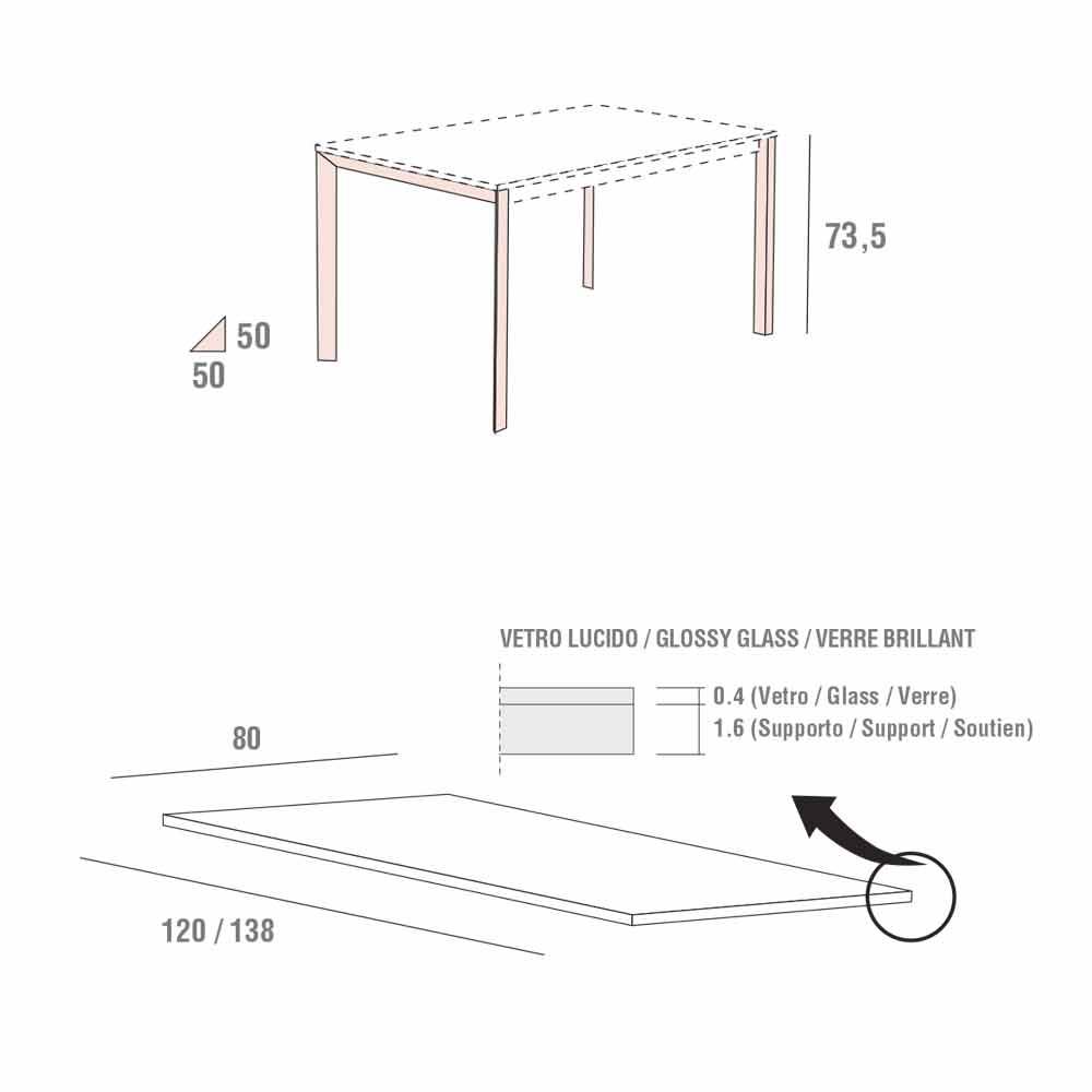 toque de elegância dado pelo vidro e o particular acabamento brilhante que valorizam ainda mais. Esta maravilhosa mesa tem também um forte lado funcional dado pela utilização de