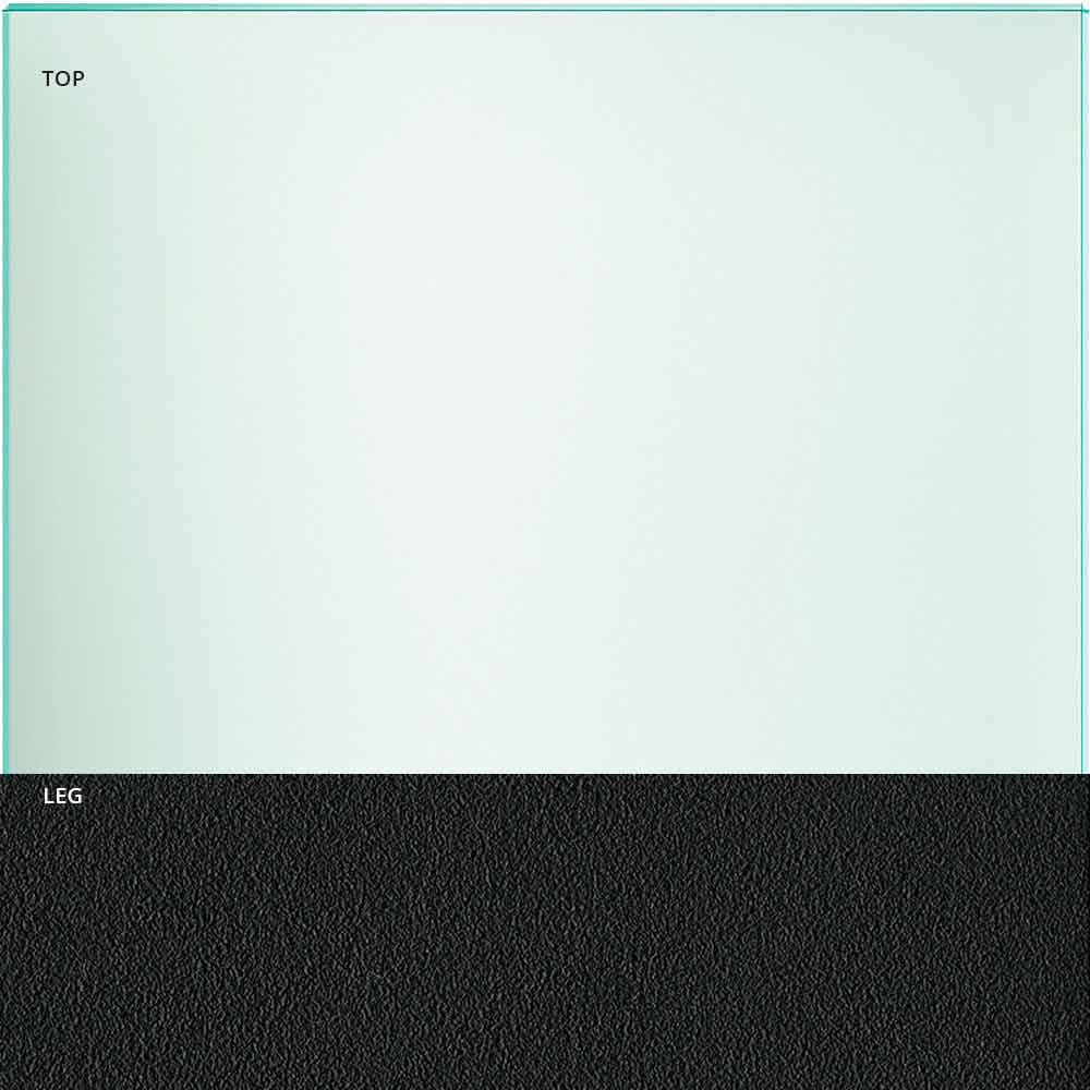 Esta mesa de jantar apresenta um design essencial feito com tampo de vidro transparente e pés de metal disponíveis em vários acabamentos.