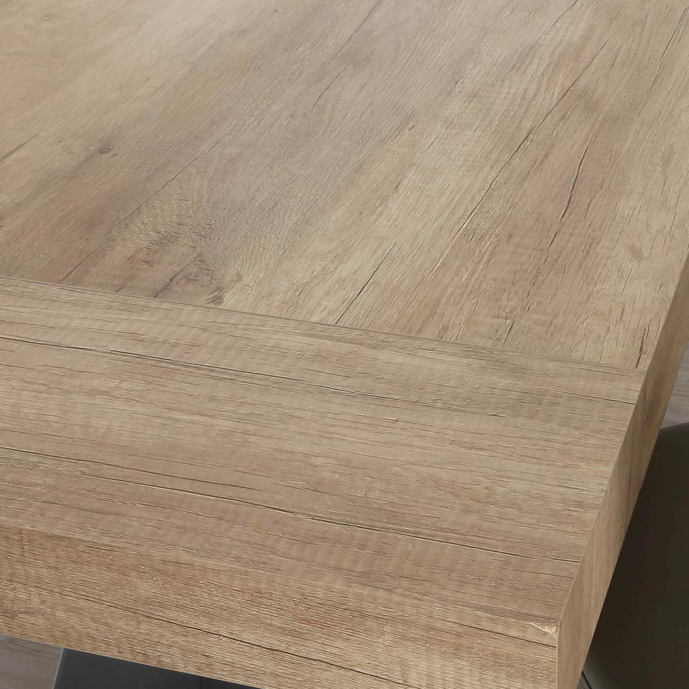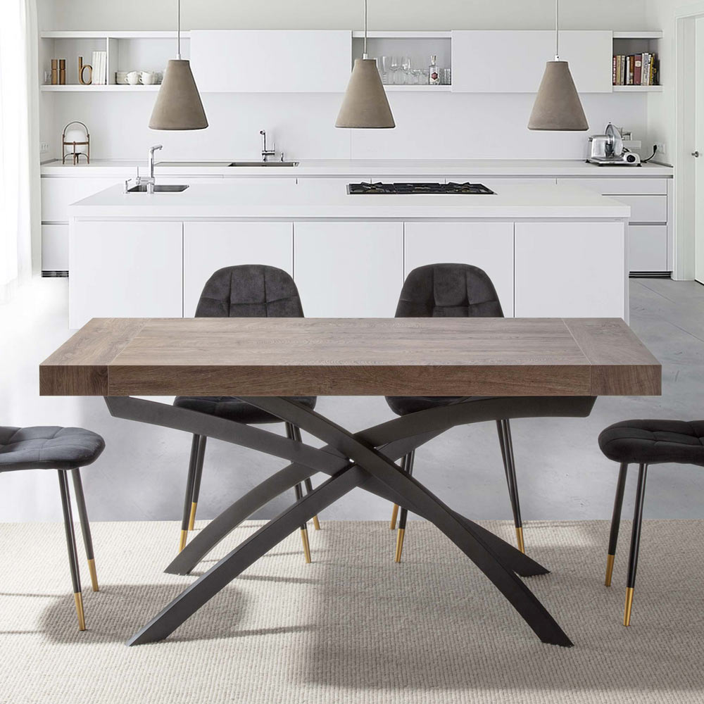 Mesa de jantar com tampo extensível até 260 cm em madeira melamina e base metálica.