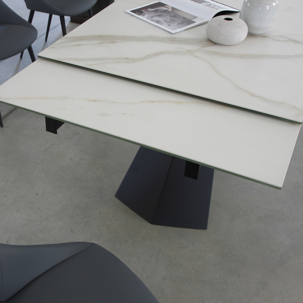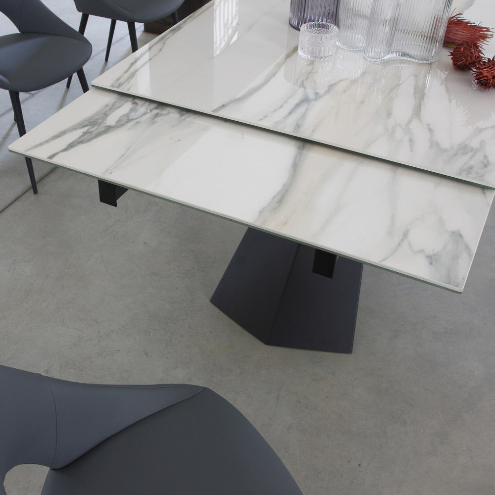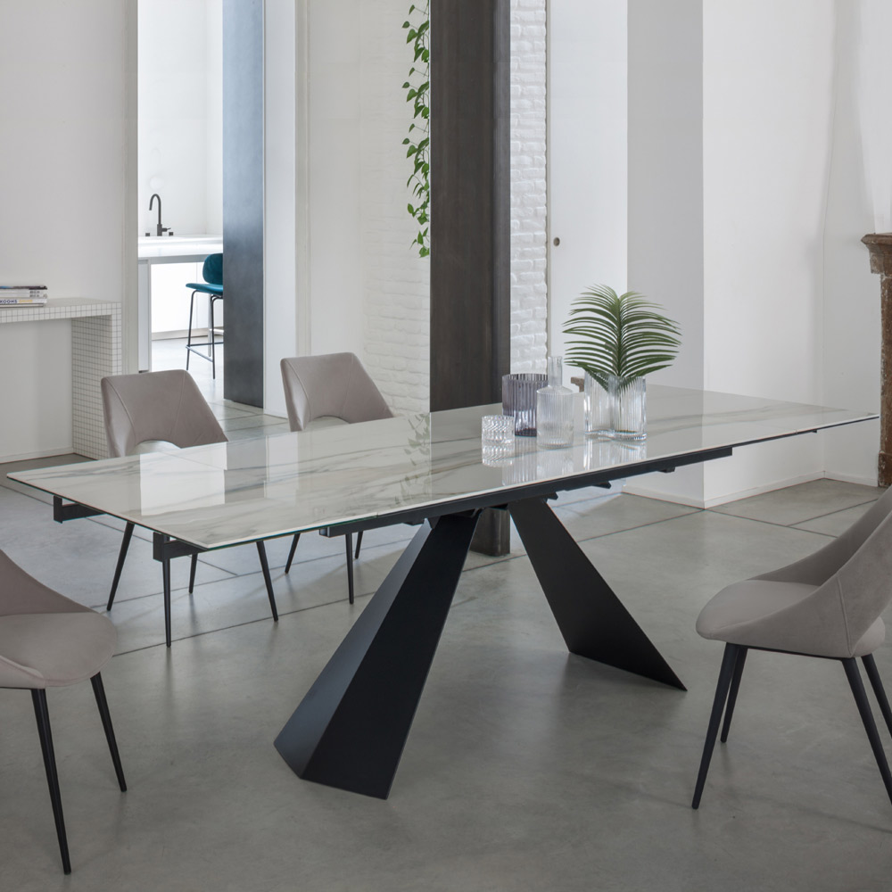 Mesa de jantar com tampo extensível até 270 cm em vidro cerâmico.