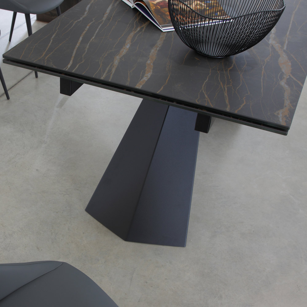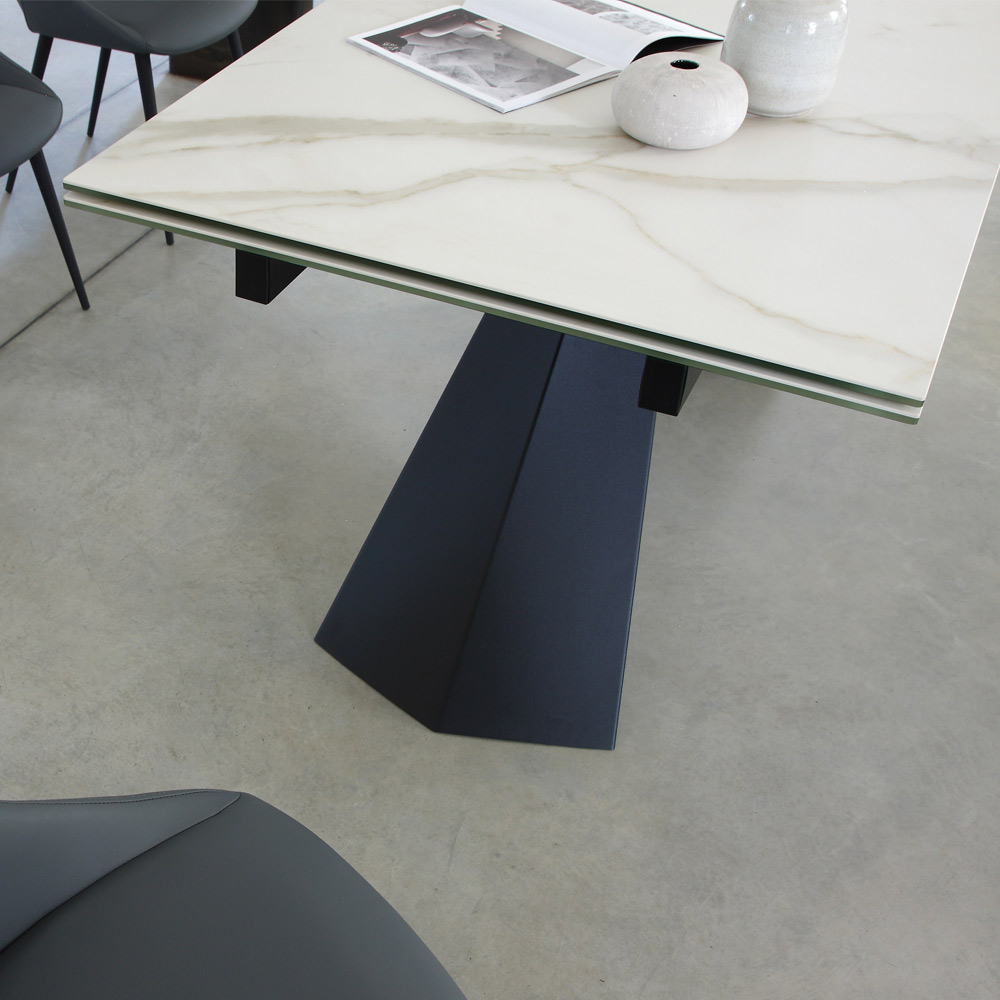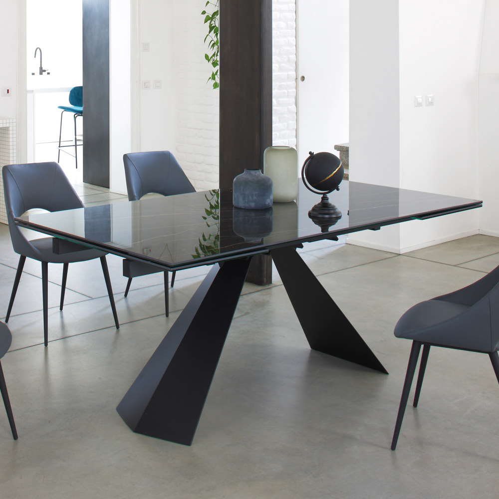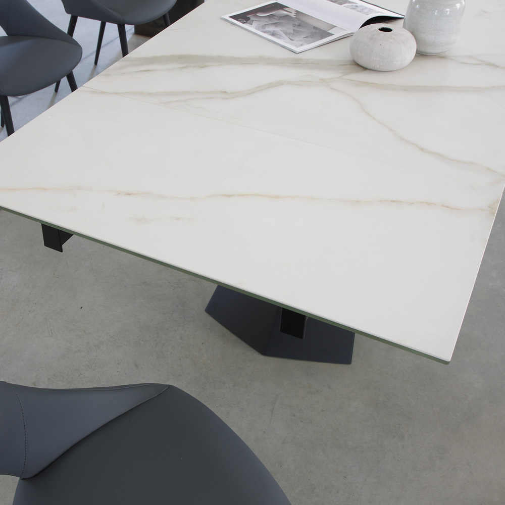 Mesa de jantar com tampo extensível até 270 cm em vidro cerâmico.
