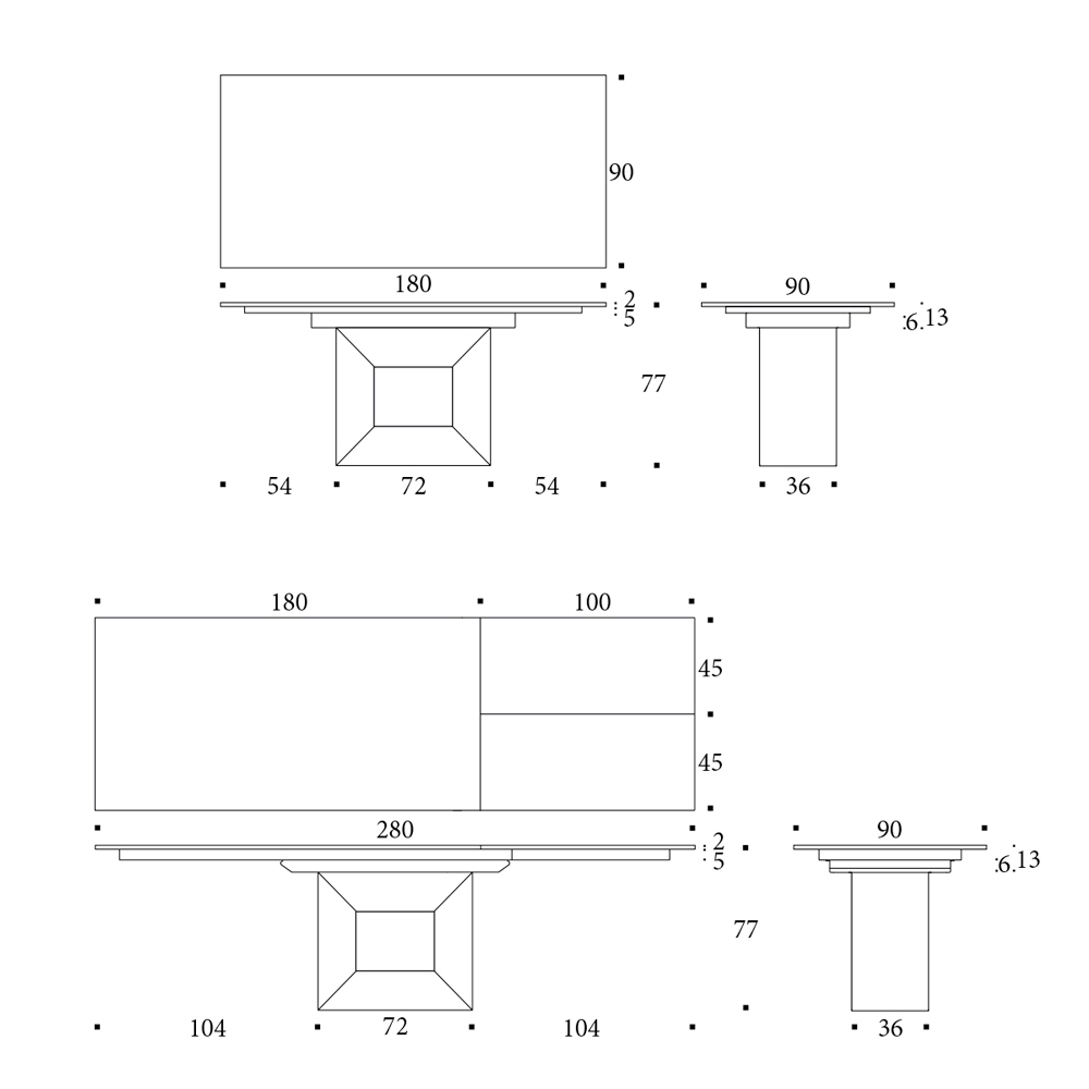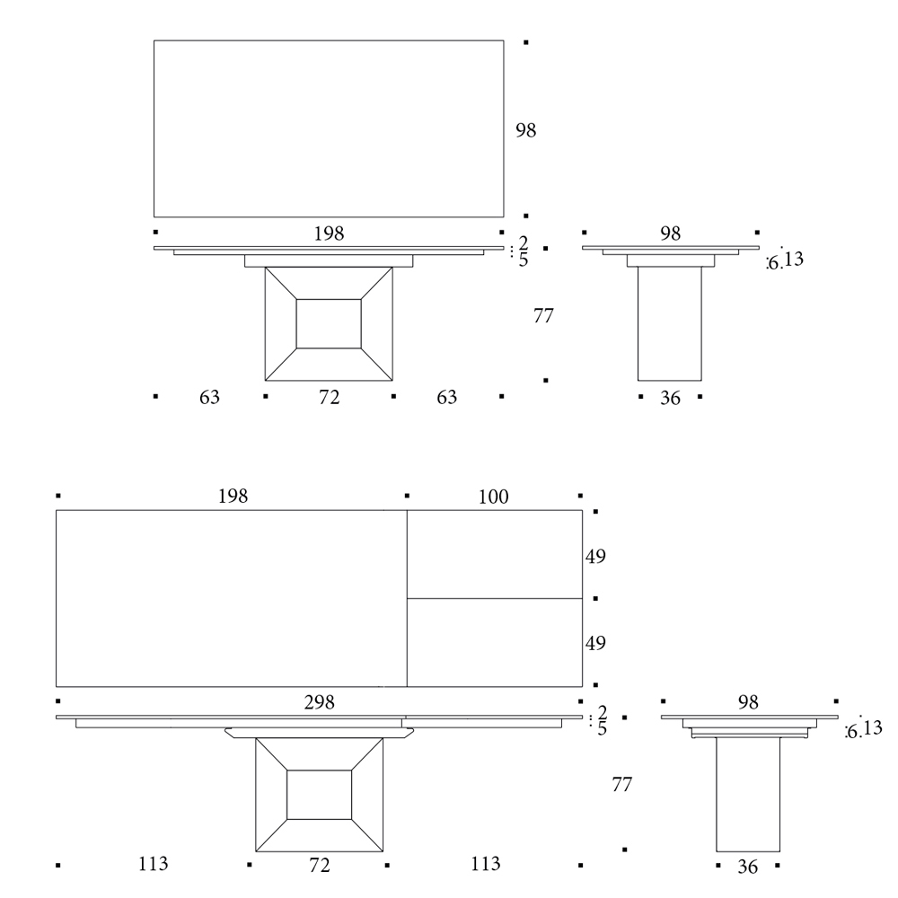 Observação: Acabamentos adicionais estão disponíveis para a mesa base. Uma mesa fixa também está disponível.