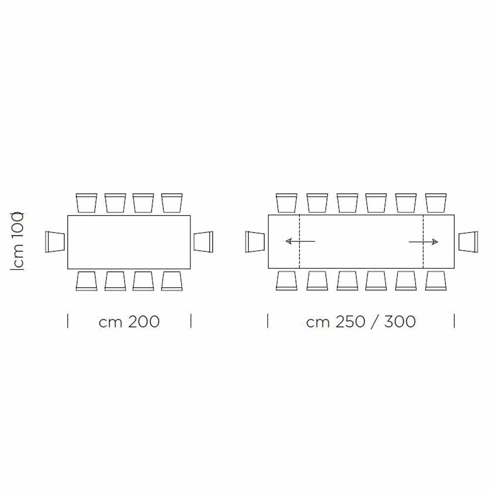 - C 200/300 x P 100 x A 75,3 cm 14 lugares (2 extensões de 50 cm).