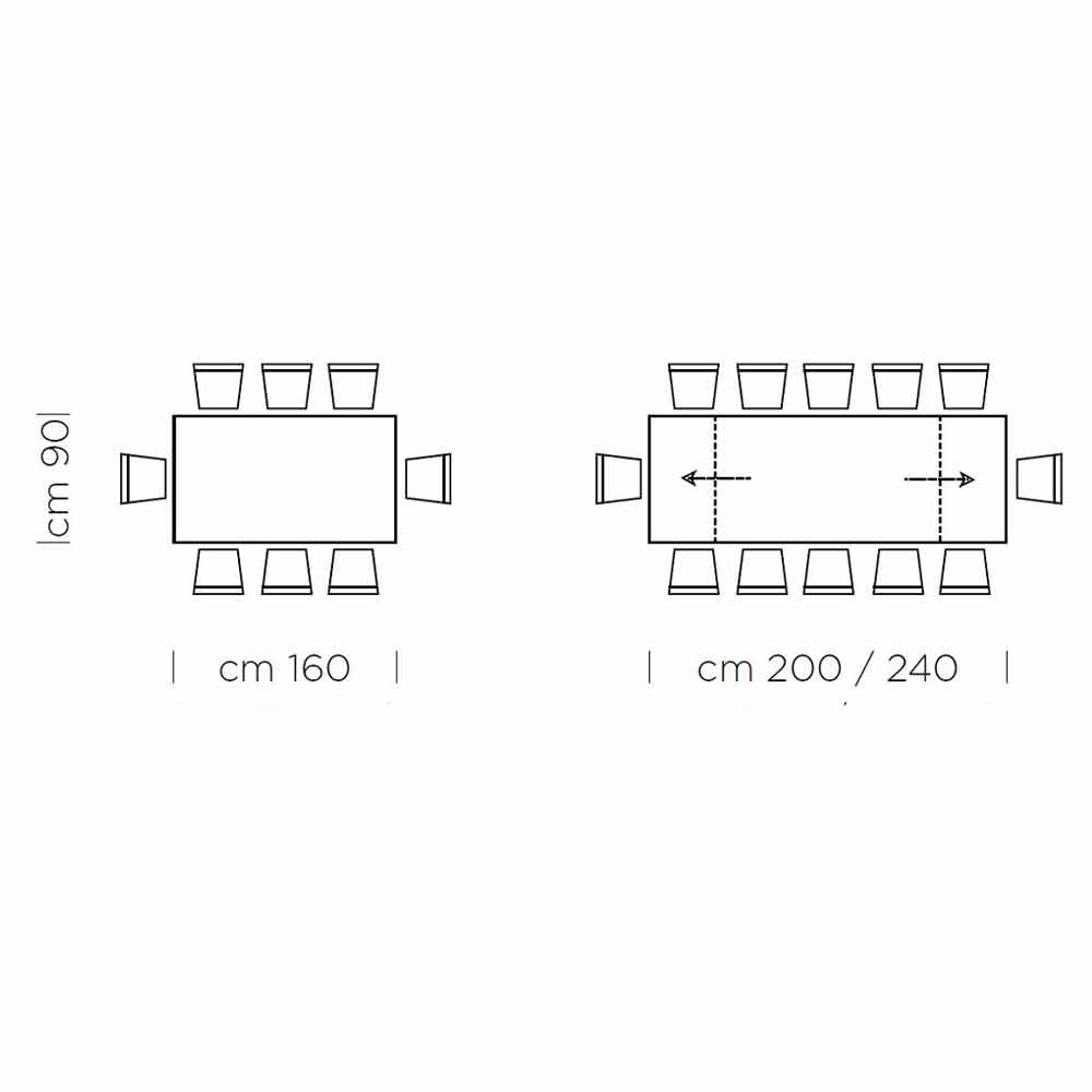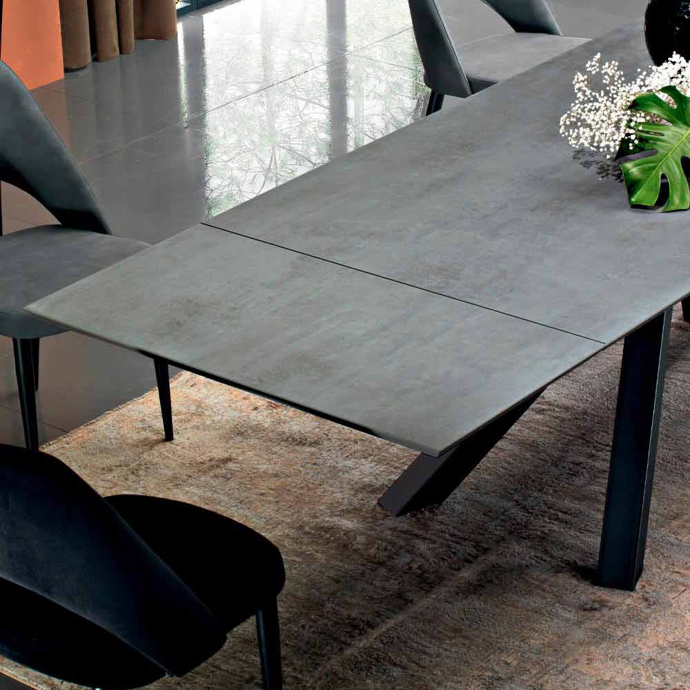 Mesa de jantar extensível com tampo em laminado HPL e base em aço de alta qualidade Made in Italy.