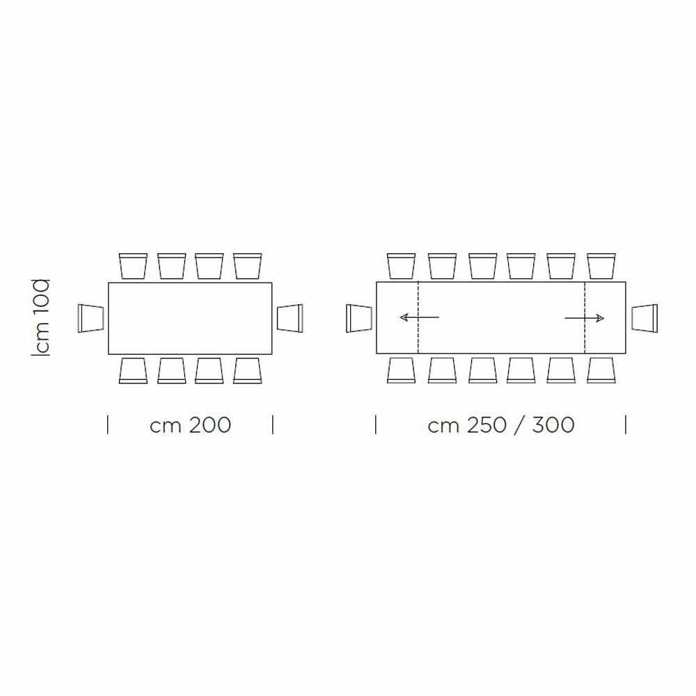 suportes removíveis nas extensões separadas a serem inseridas , pode atingir até 300 cm de comprimento, sendo a solução perfeita para quem gosta de organizar almoços e jantares em companhia, conseguindo crie uma