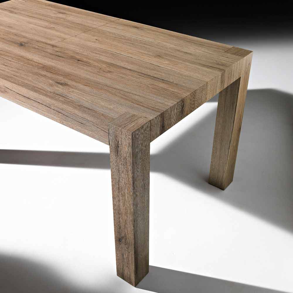 A mesa de jantar Oky é feita de melamina com acabamento em carvalho natural. Possui 4 práticas extensões de 40 cm cada que permitem estender a mesa até uma superfície de 320 cm, através de um prático e rápido sistema de extensão em trilhos deslizantes.