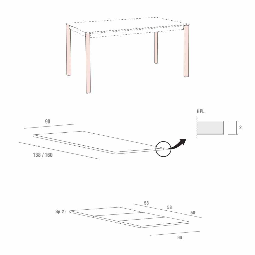 tampo extensível que pode atingir 334 cm de comprimento, sendo a ideia perfeita para quem adora organizar almoços e jantares com amigos e necessita de uma solução tão prática quanto moderna, capaz de criar um ambiente maravilhoso. harmonia com o mobiliário envolvente. Para sublinhar a sua esplêndida estética está o hpl top, um