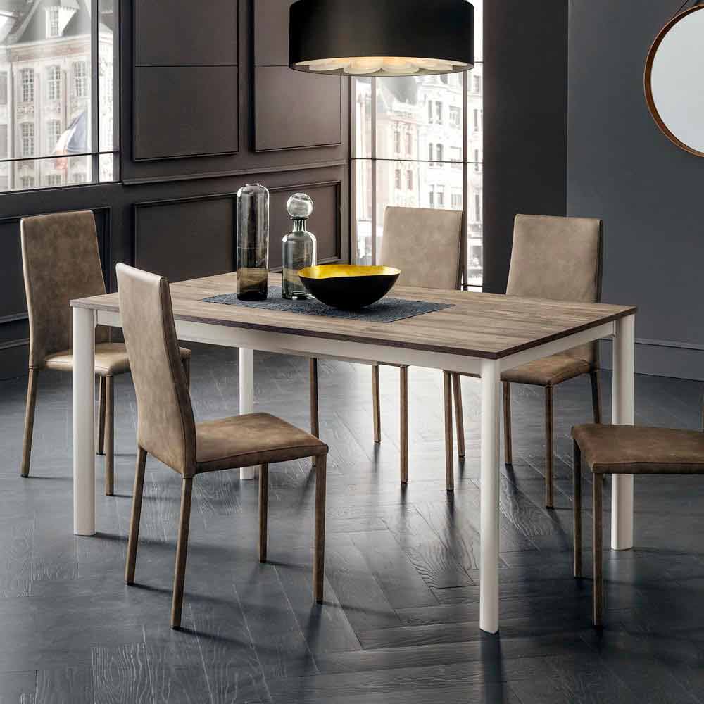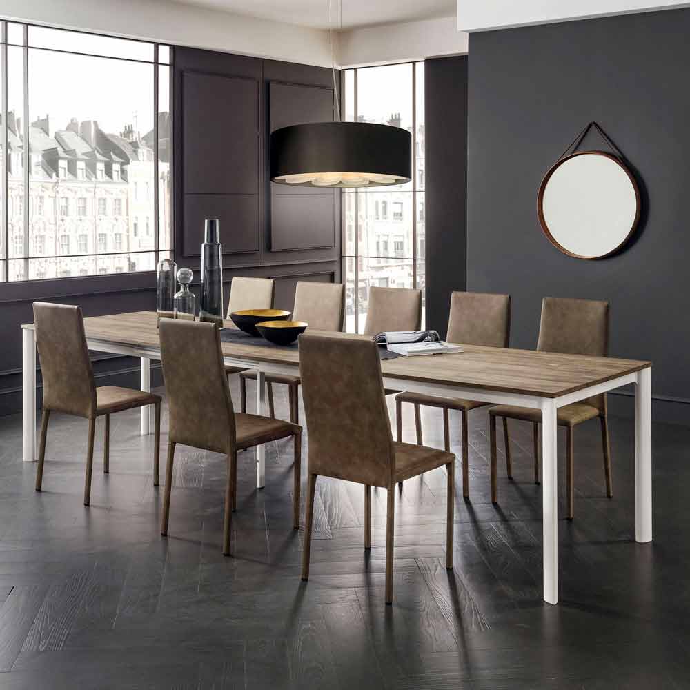 Mesa de jantar com tampo extensível em hpl com efeito de madeira fabricado na Itália de alta qualidade.
