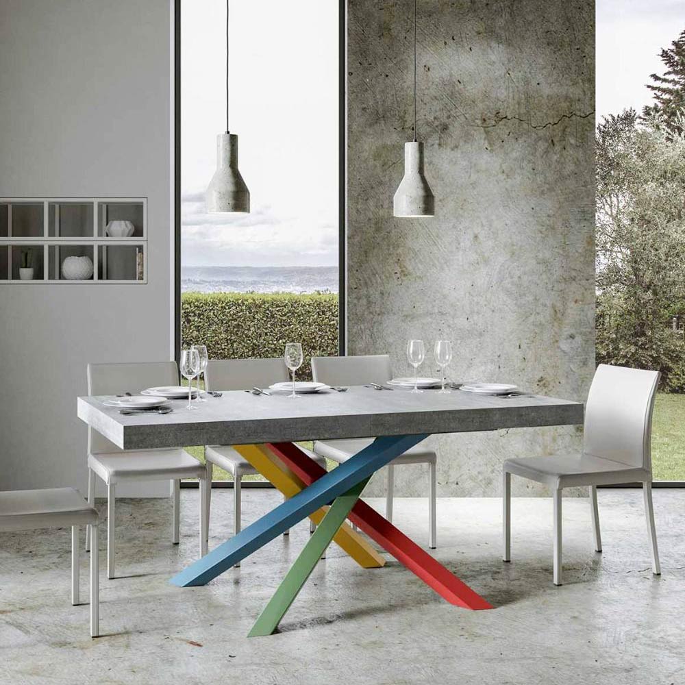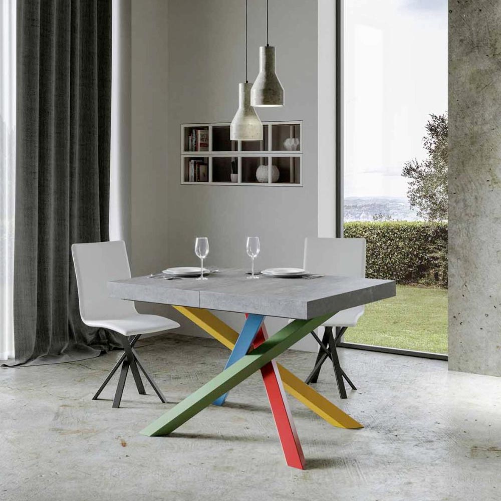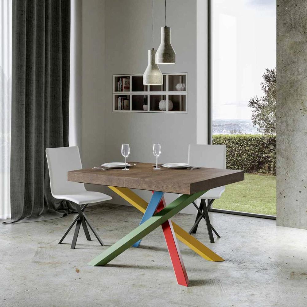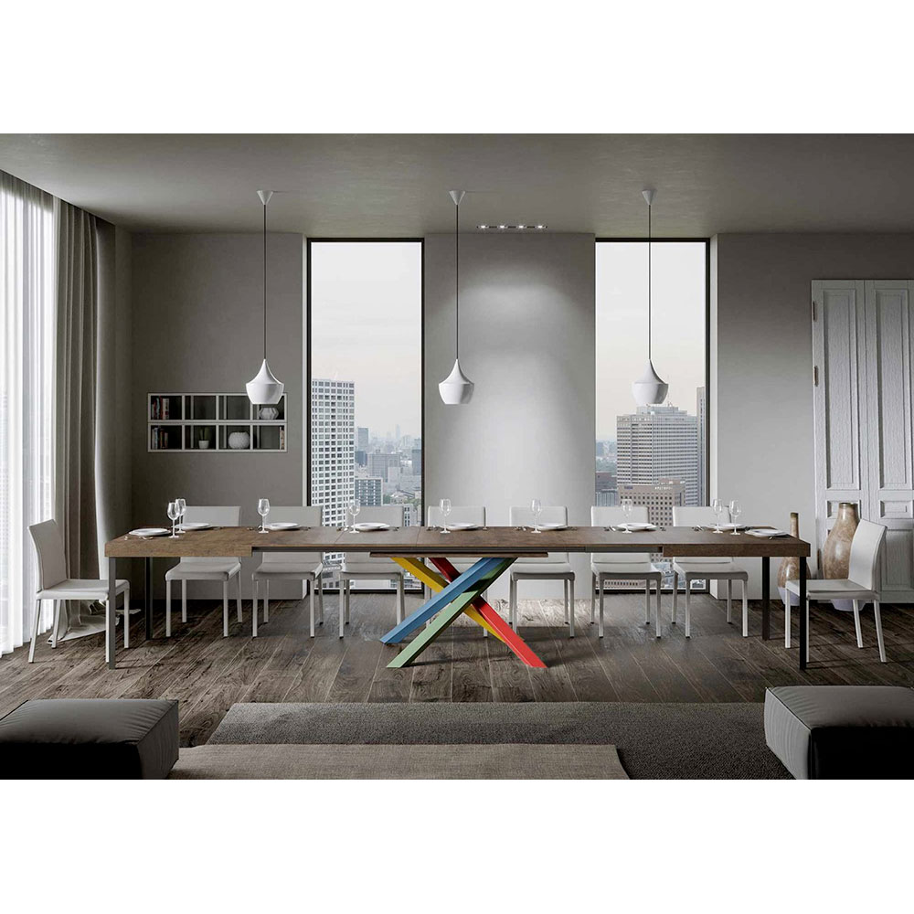 Descubra a mesa extensível, uma obra-prima do design moderno que se destaca por sua silhueta única e funcionalidade versátil. O tampo em madeira realça a luminosidade dos espaços, oferecendo uma superfície lisa e resistente que convida ao uso diário. A base da mesa é um verdadeiro espetáculo geométrico, com pernas cruzadas que se entrelaçam num jogo de cores. A combinação proposta é: Perna 1: Vermelho Carmim (RAL 3002). Perna 2: Verde amarelado (RAL 6018). Perna 3: Azul Distante (RAL 5023). Perna 4: Amarelo Sinal (RAL 1003).As cores RAL são opacas. Esta combinação não só acrescenta um toque de vitalidade ao design, mas também garante estabilidade&strong> e resistência. O mecanismo de extensão da mesa é tão simples quanto engenhoso, permitindo que esta elegante peça de mobiliário seja transformada de uma mesa prática para quatro pessoas em uma área aconchegante para receber jantares e reuniões maiores.