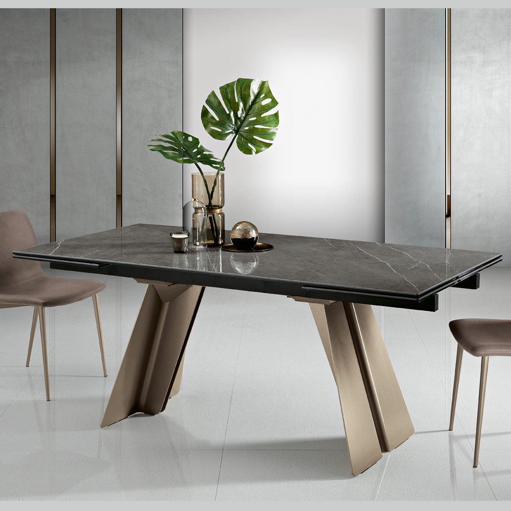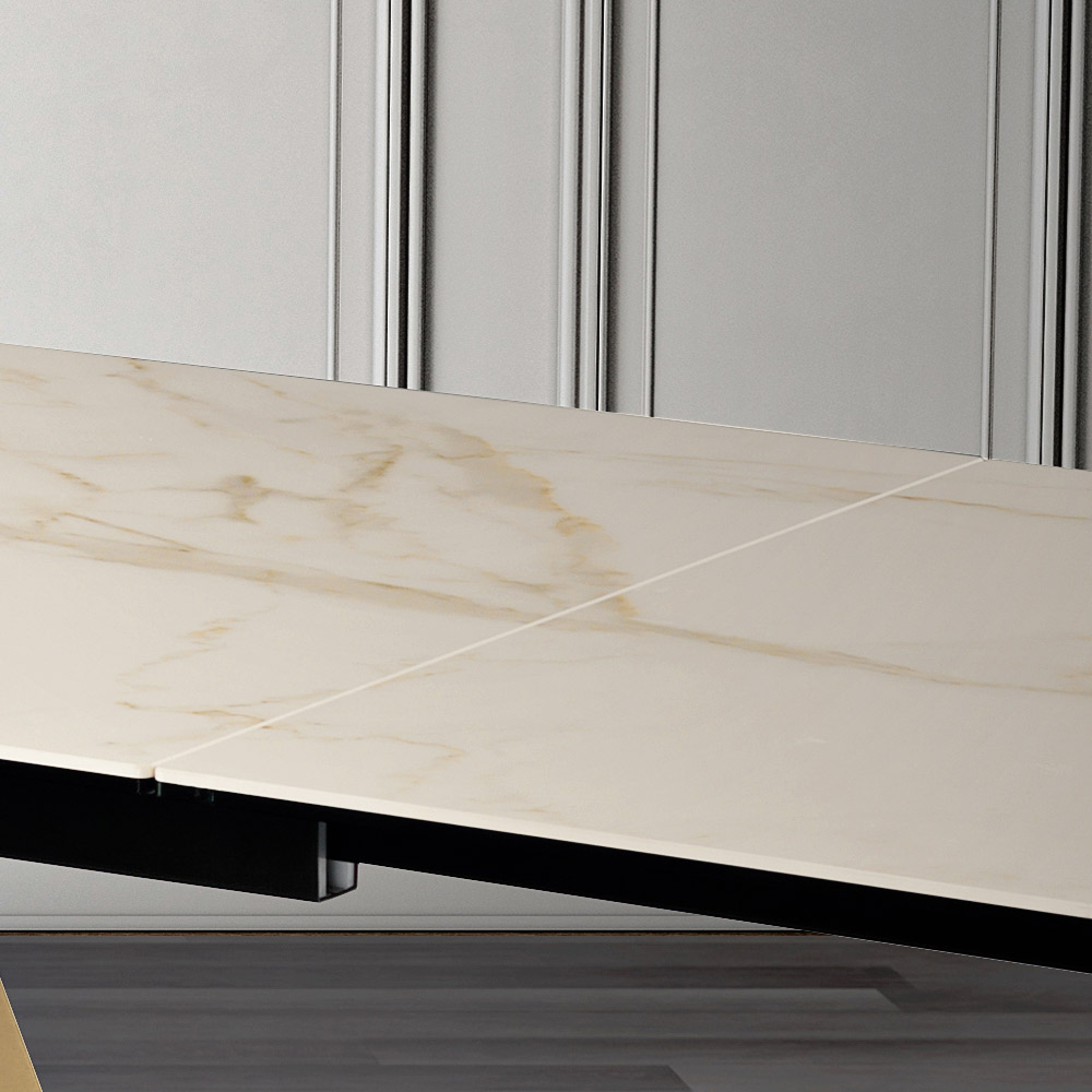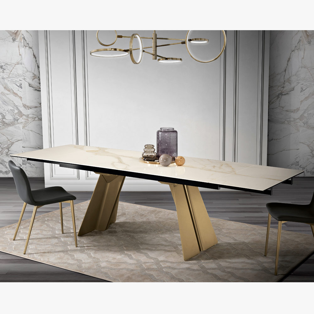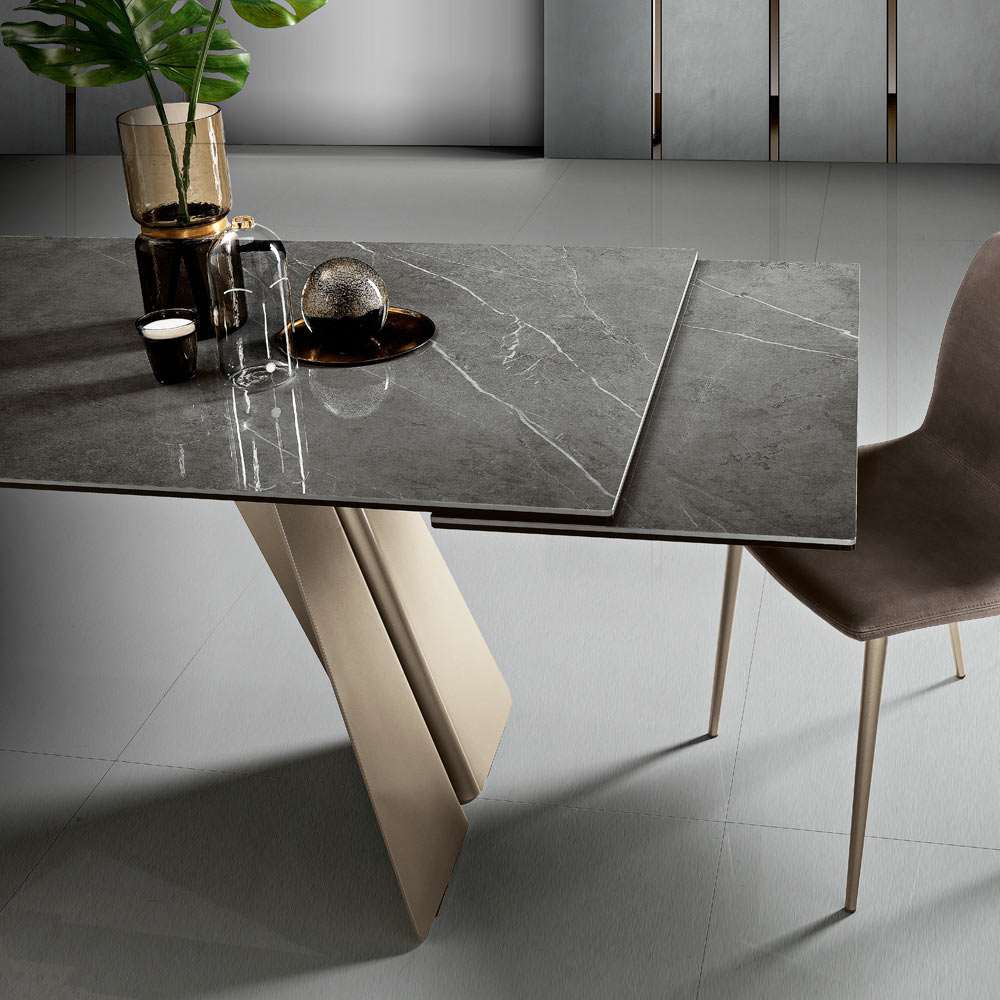 Esta criação é muito mais que uma mesa extensível : é uma obra de arte que define qualquer ambiente com a sua presença cenográfica. A superfície fala a linguagem do luxo e da natureza, prometendo transformar cada refeição num evento.