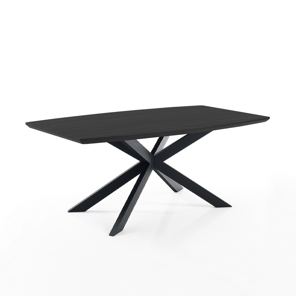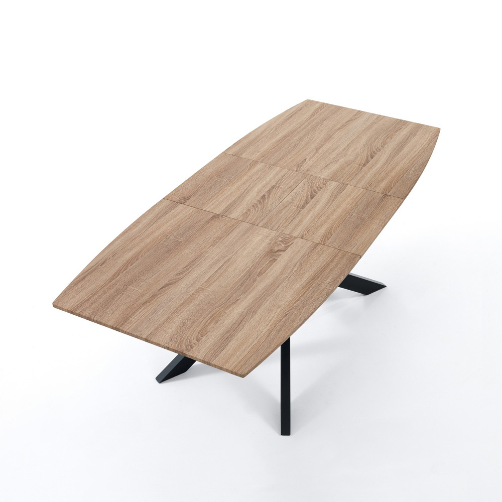 - tampo com acabamento em carvalho, base em metal pintado de preto mate