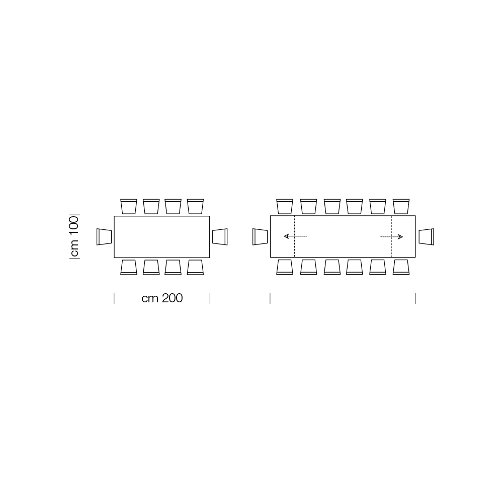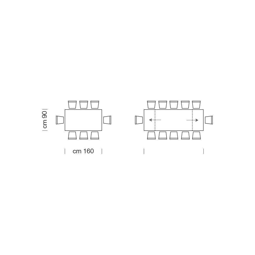 mesa torna-se extensível deslizando lateralmente com a extração de 2 extensões de 50cm cada contidas no interior da moldura.