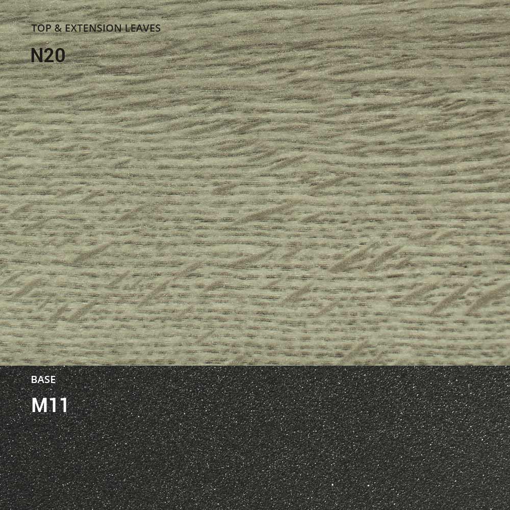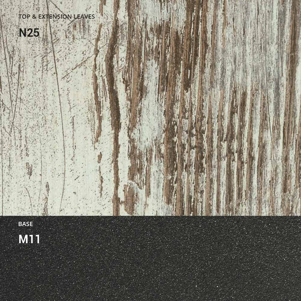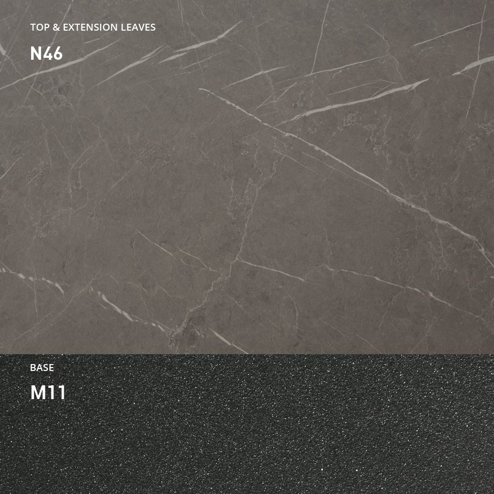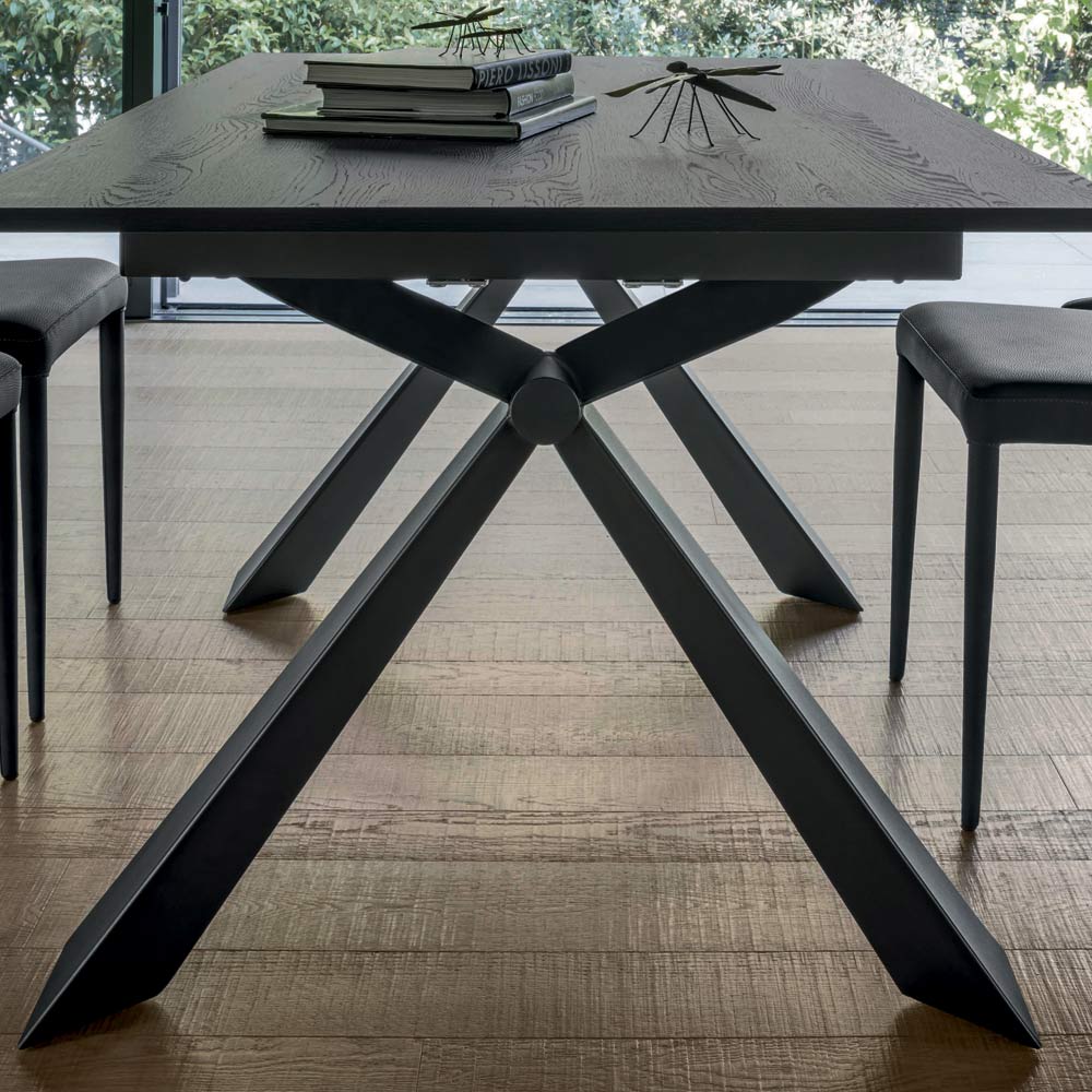 Mesa de jantar com tampo extensível em melamina e base em metal Made in Italy.