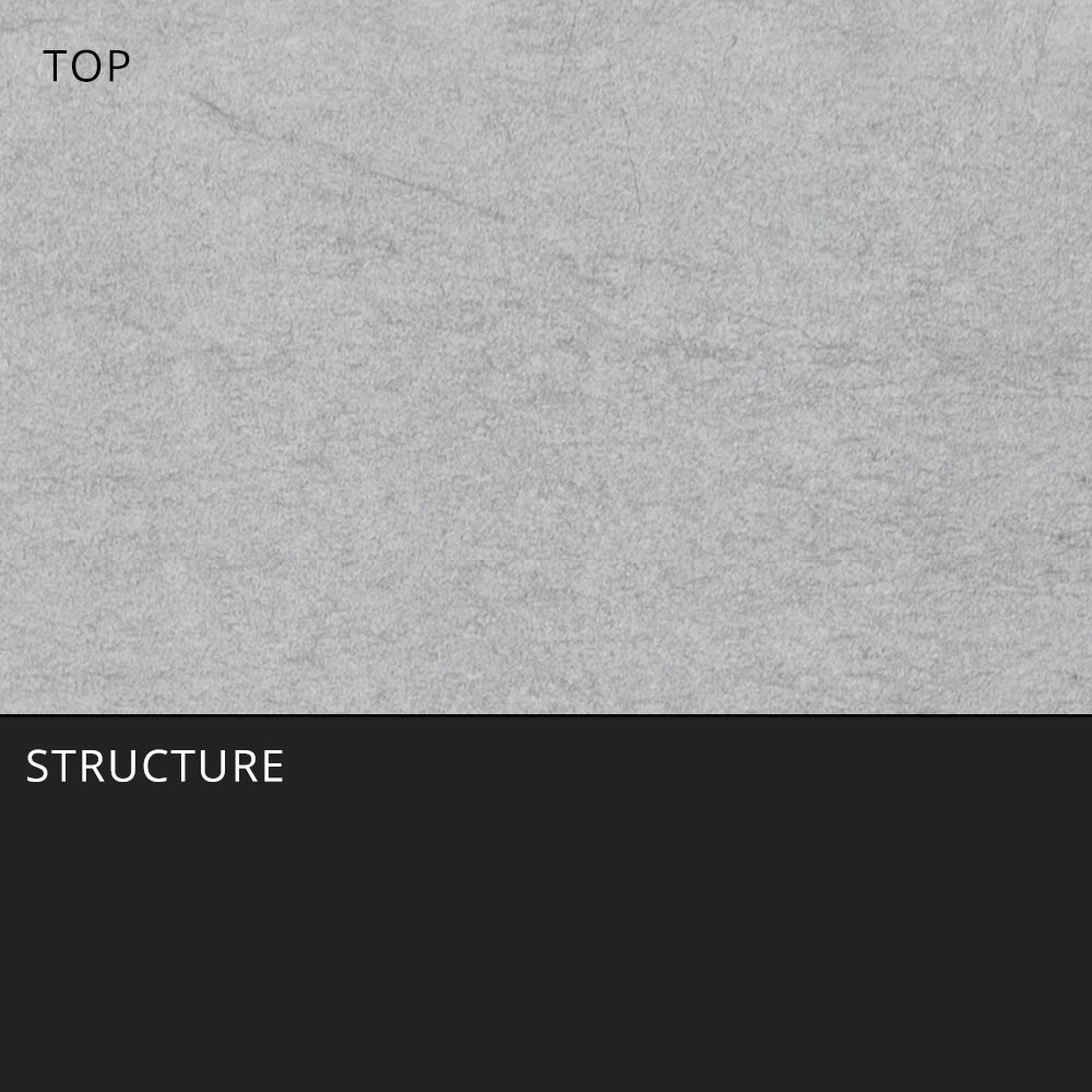 - Tampo em grés cinza areia metálico e efeito mármore preto