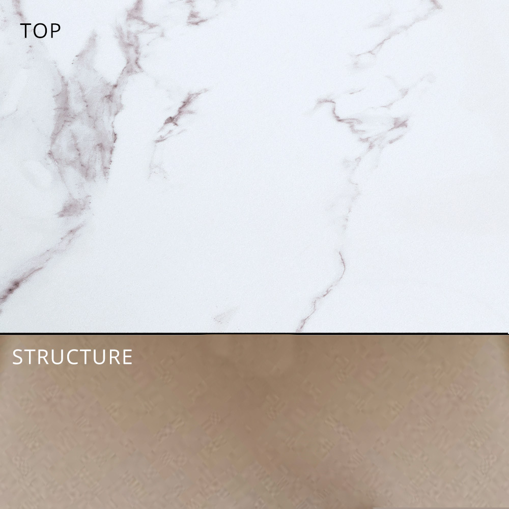 - Alumínio branco e tampo de grés com efeito mármore branco