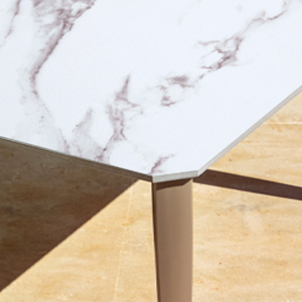 - Alumínio cinza areia metálico e tampo em grés de efeito mármore branco