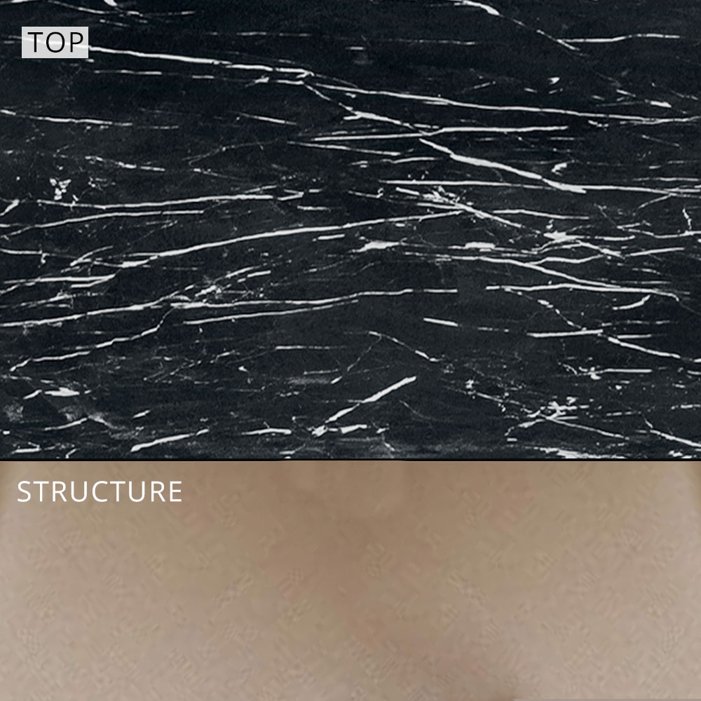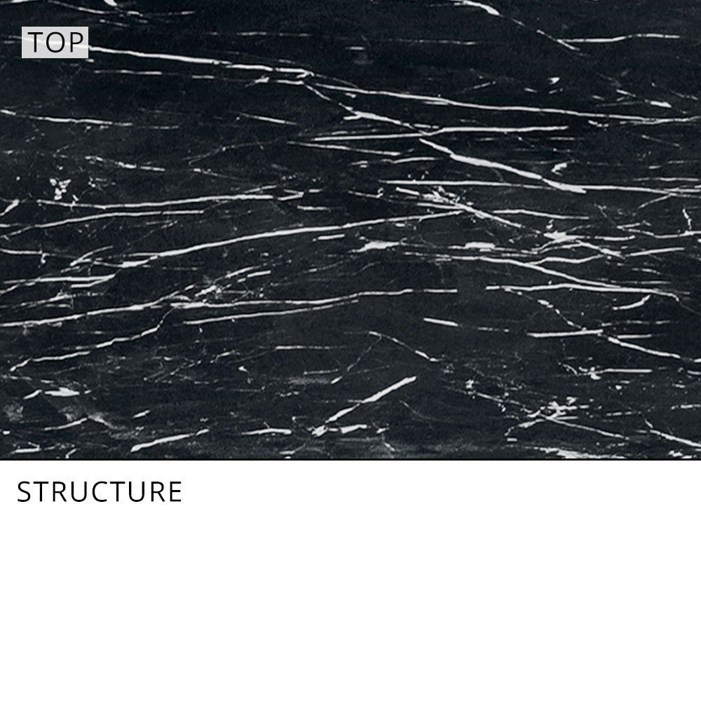 Acabamentos disponíveis:- tampo em grés porcelânico com efeito mármore branco e mármore preto