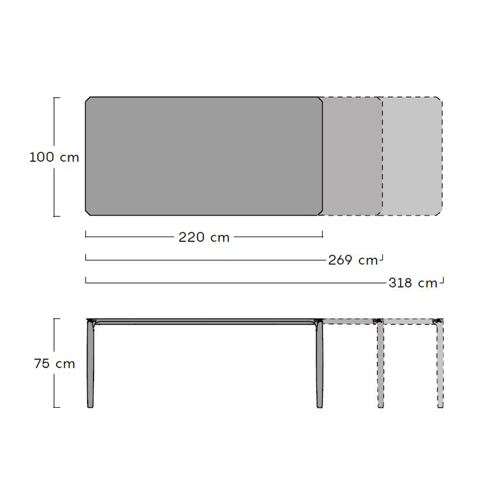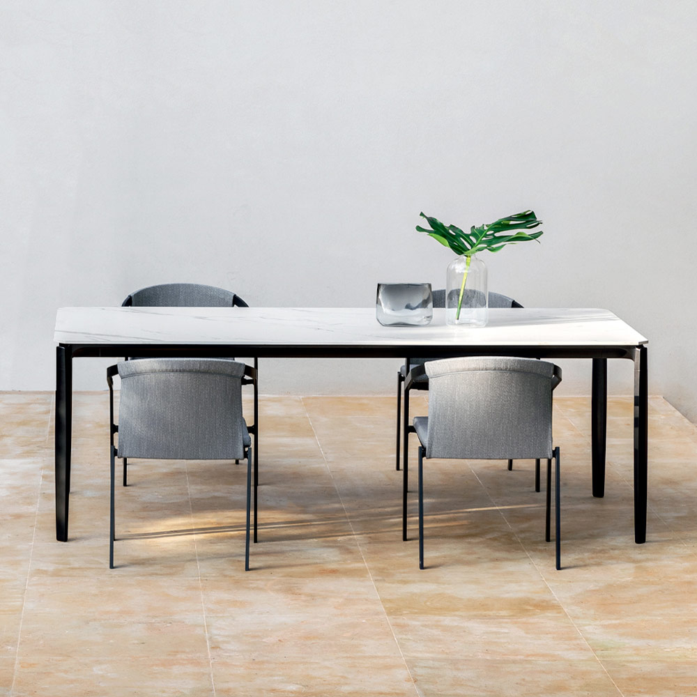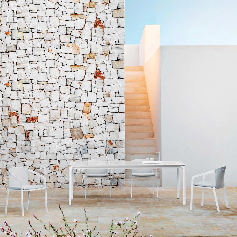 Mesa de jantar extensível até 318 cm exterior design em alumínio e tampo em grés diversos acabamentos, made in Italy.