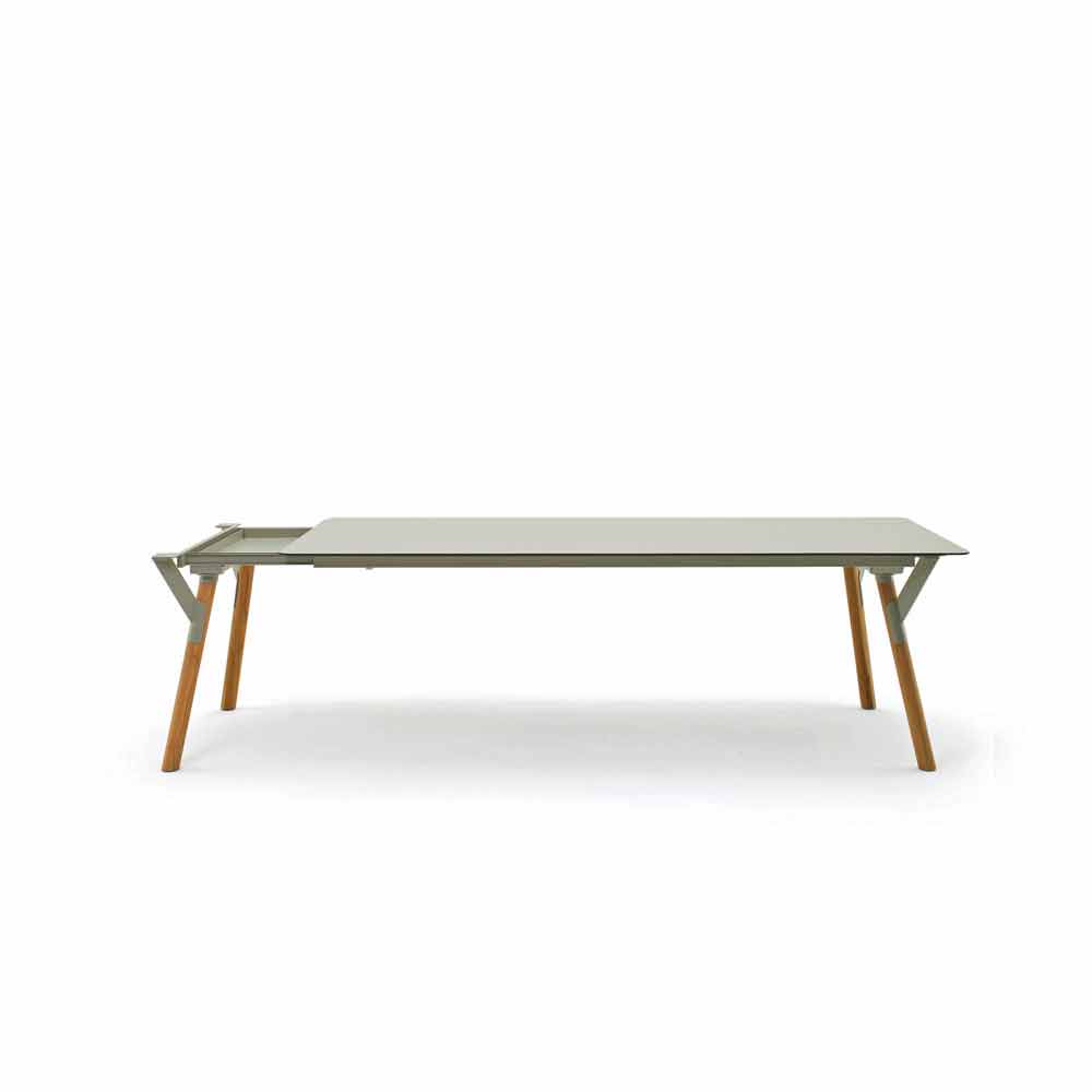 Varaschin Link mesa de jantar extensível ao ar livre com pés de teca, H 75 cm