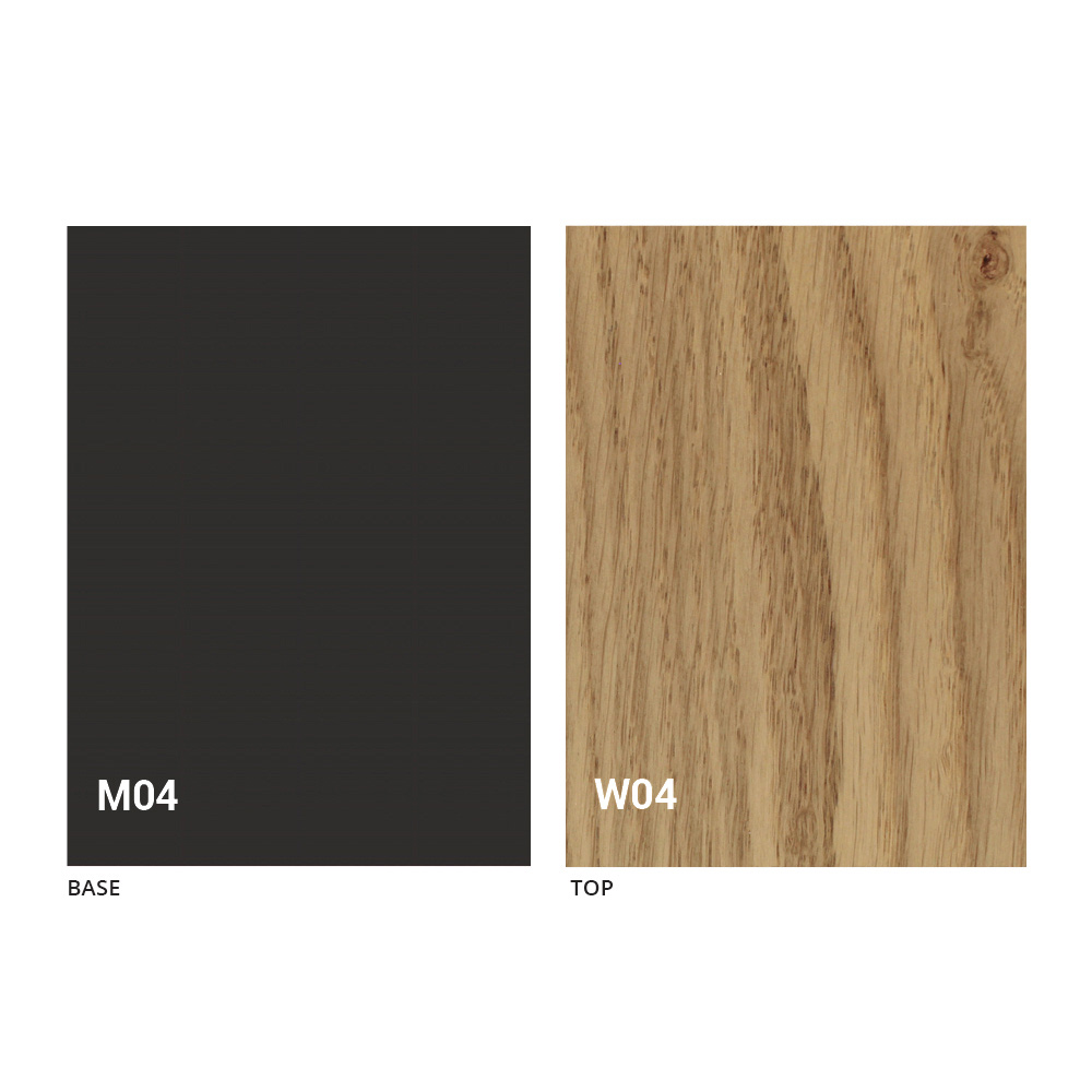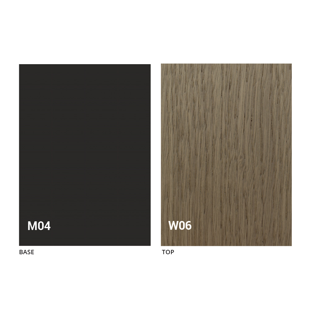Disponível em diferentes acabamentos:- tampo em carvalho folheado a cinza;
