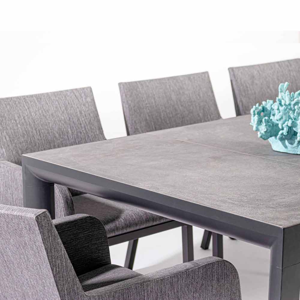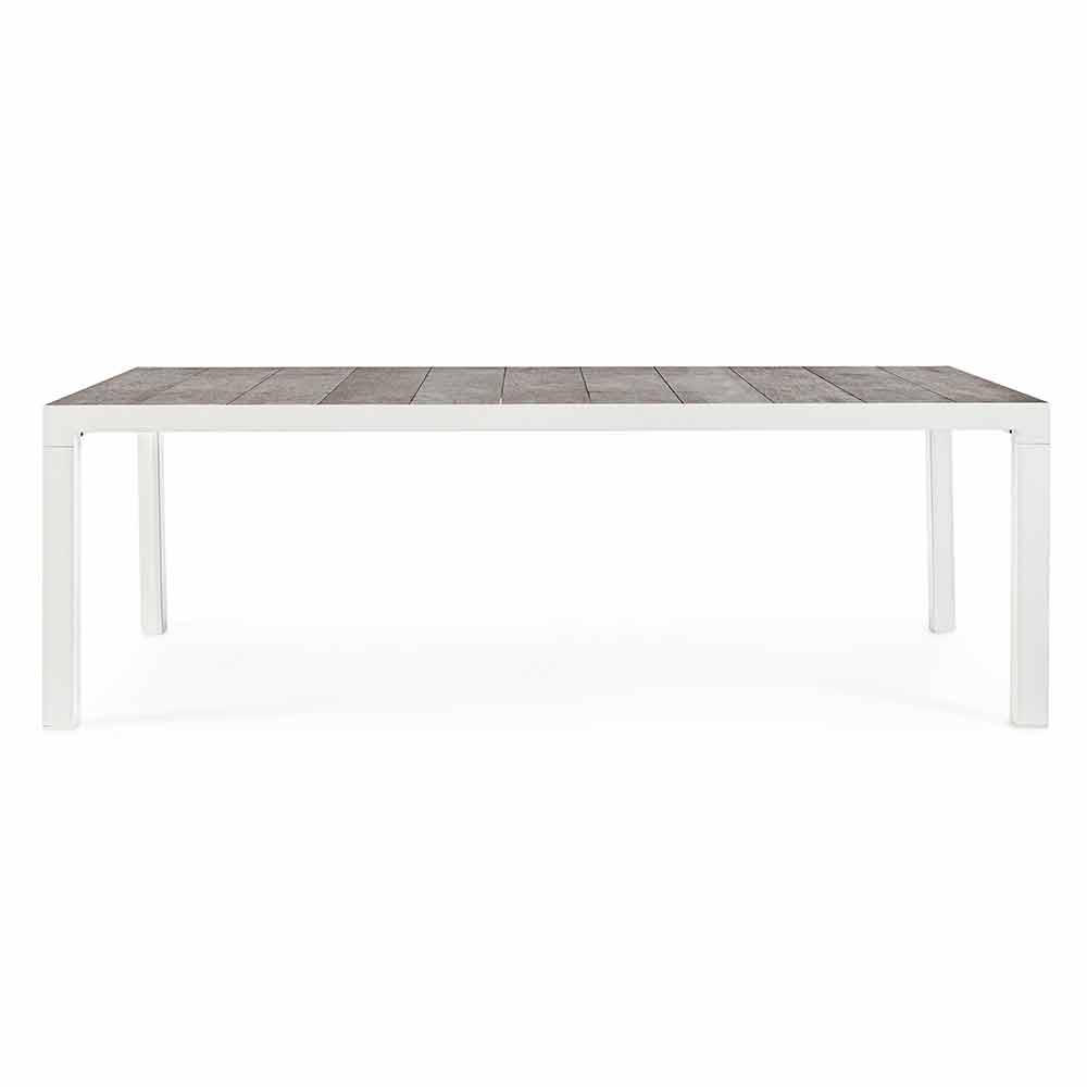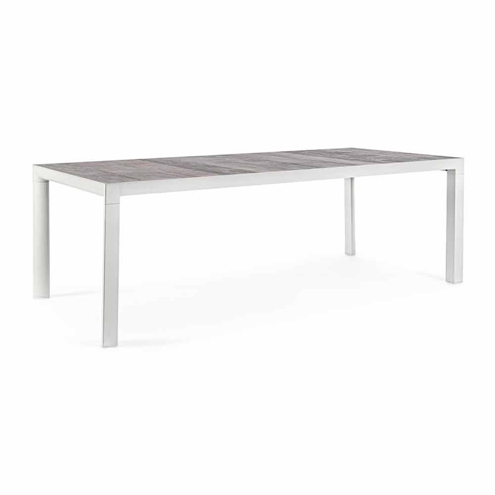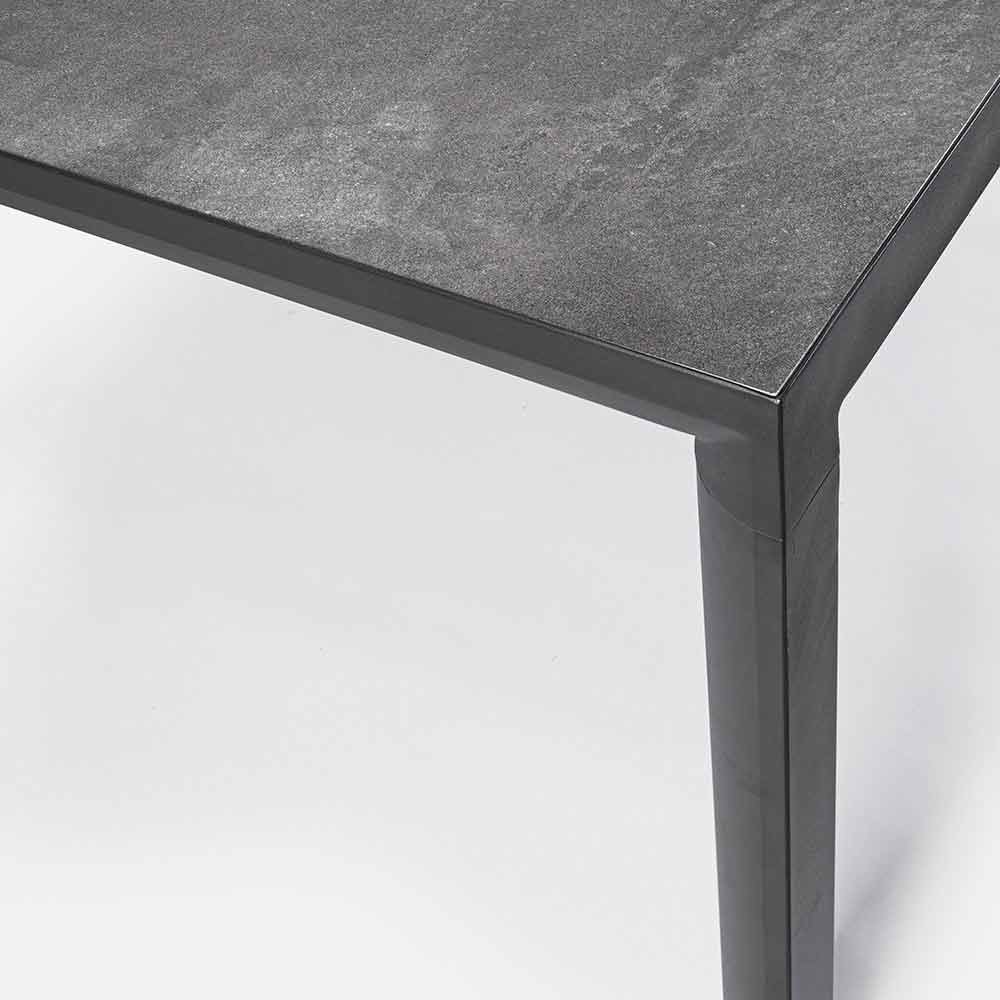 Estrutura em alumínio , pintada a pó (poliéster). Tampo em cerâmica (10 mm de espessura). Pernas para montar .