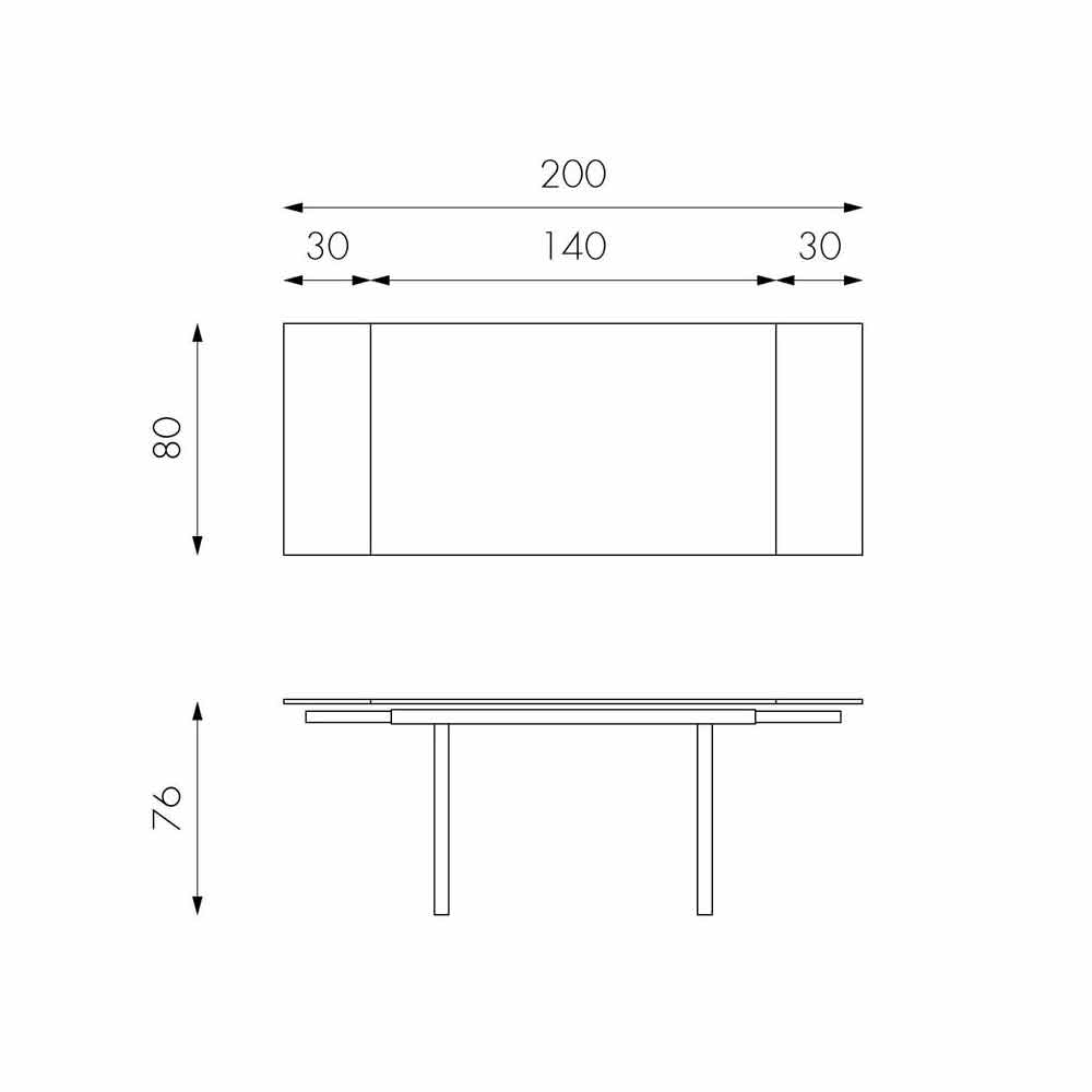 Nardo é uma mesa extensível até 200 cm com dimensões: 1,140 / 200 x d.80 x h.76 cm.