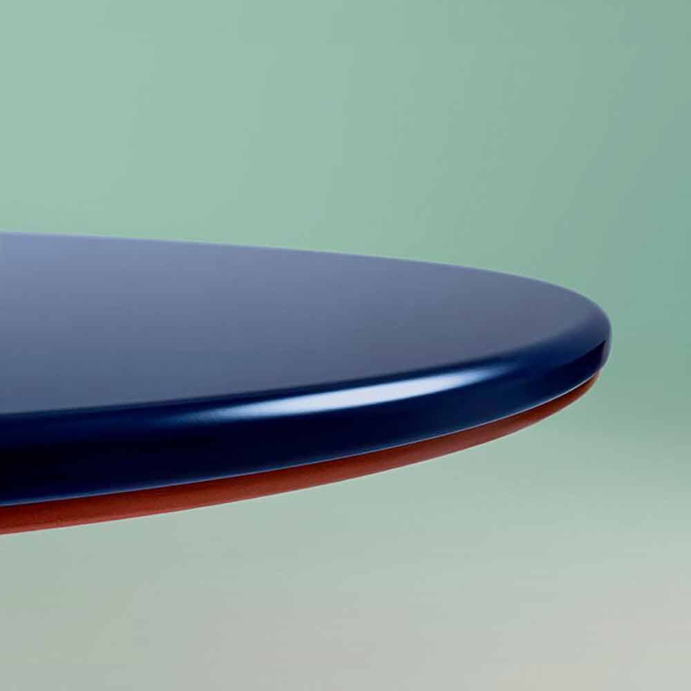 Mesa de jantar oval em MDF lacado azul com detalhes em cobre de design moderno e original made in Italy.