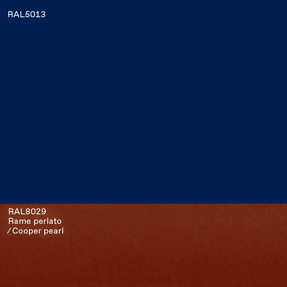 - estrutura azul cobalto RAL5013 + detalhes inferior e inferior em cobre perolado RAL8029
