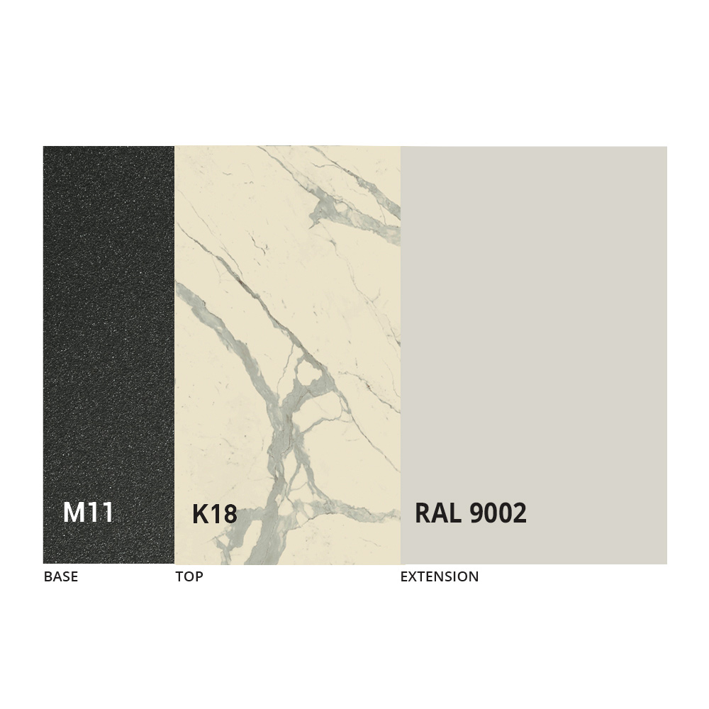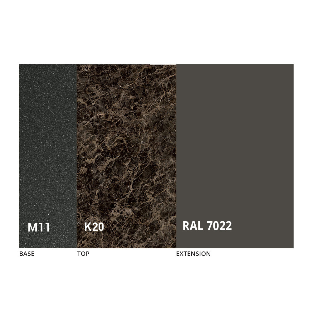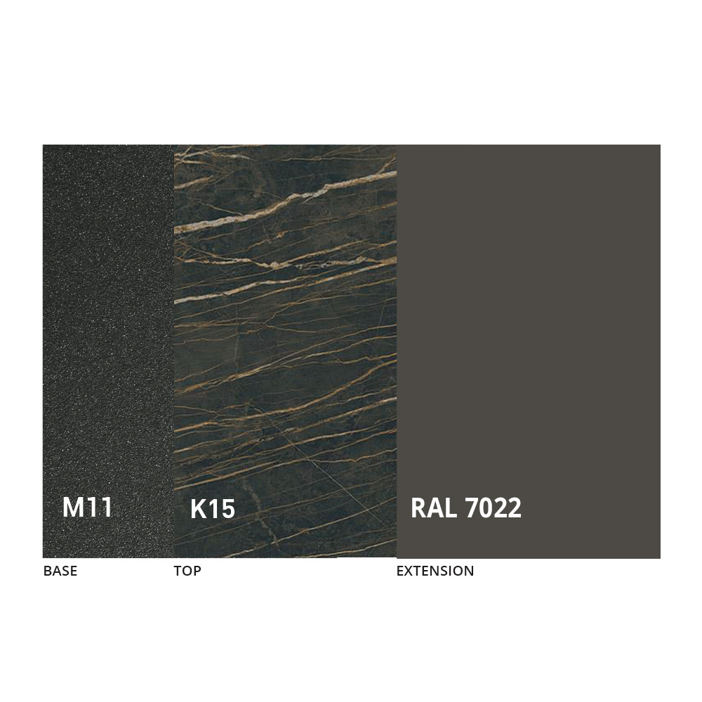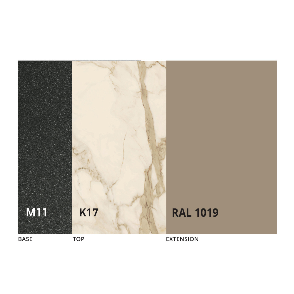 NB : o tampo e a estrutura da mesa estão disponíveis numa vasta gama de acabamentos.