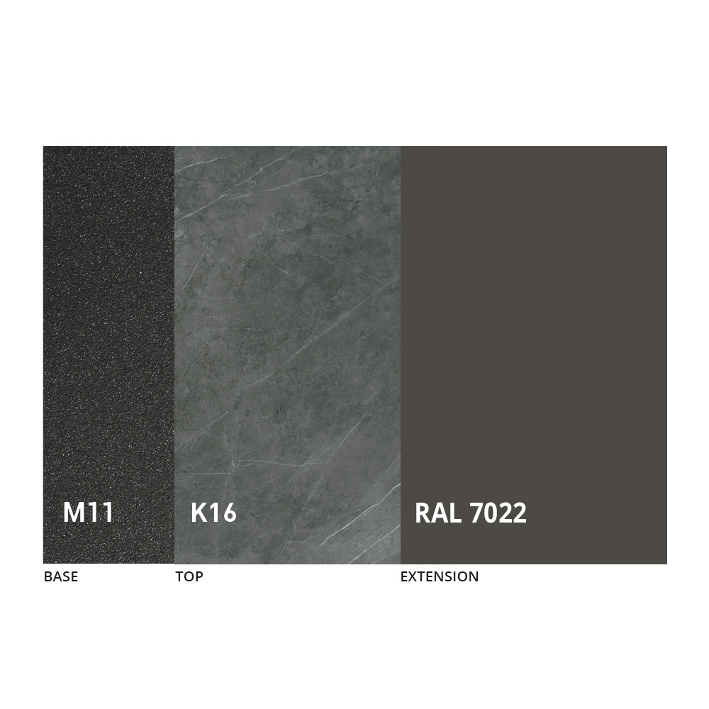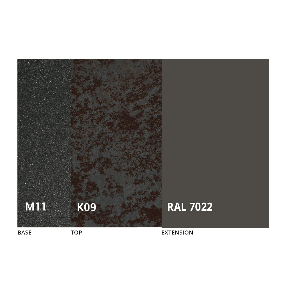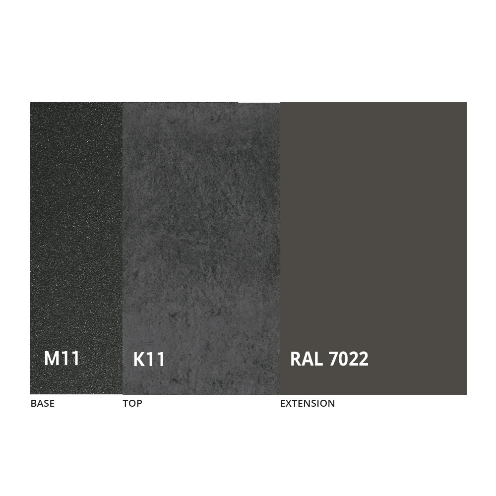 estrutura metálica pintada em grafite relevado e tampo