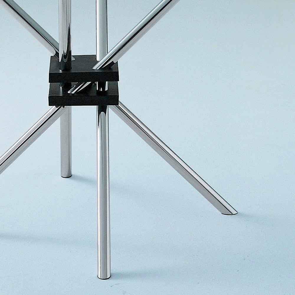 Mesa de jantar com tampo redondo de vidro e base de aço Made in Italy.