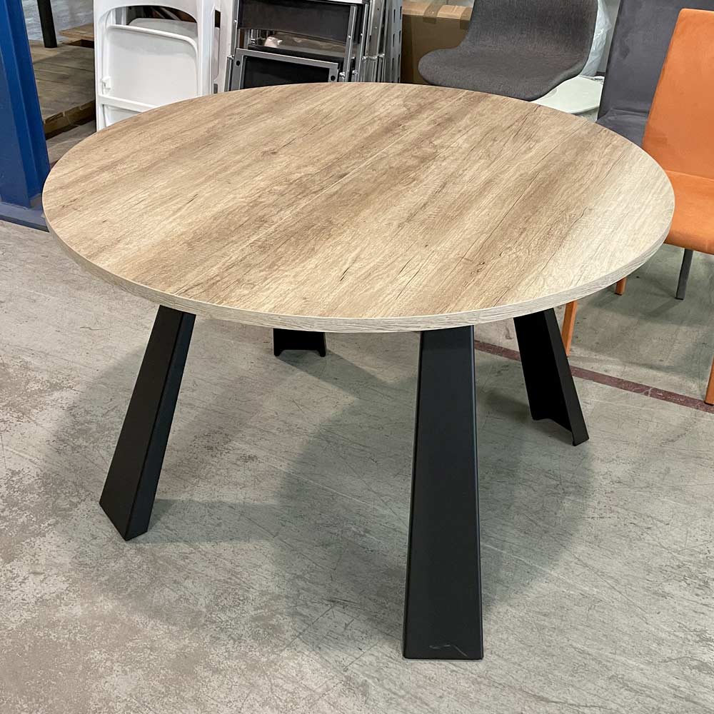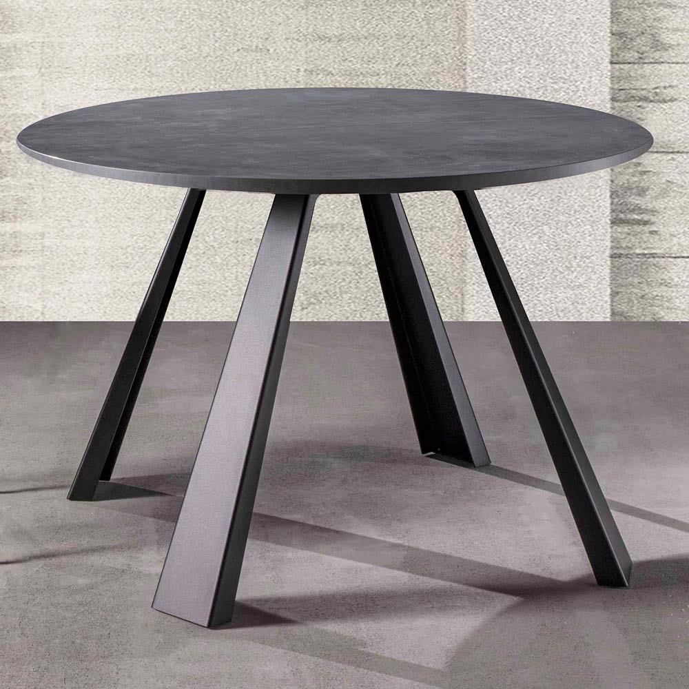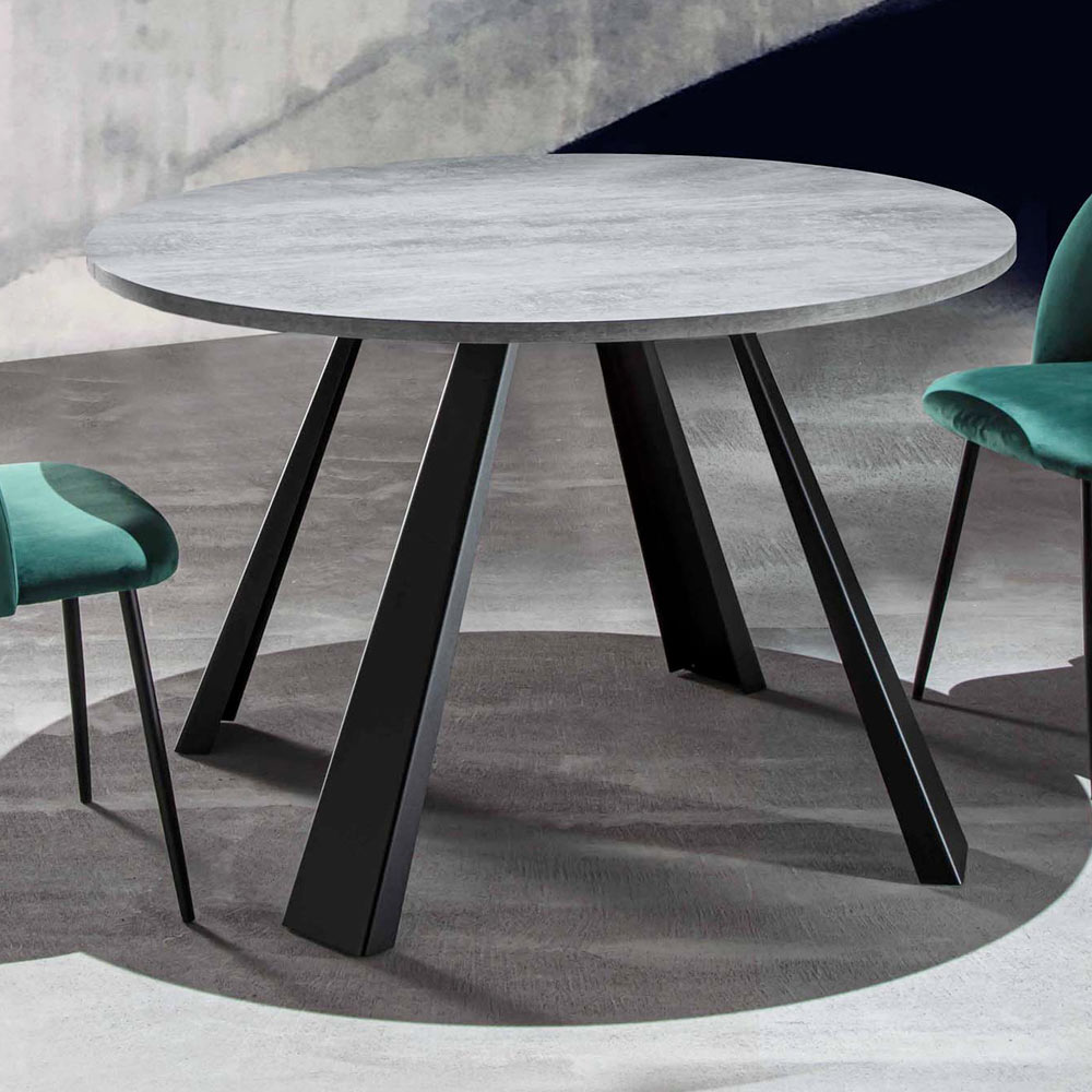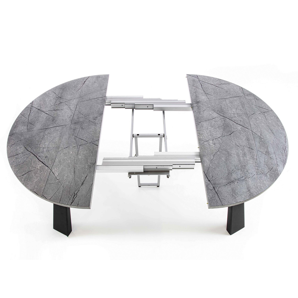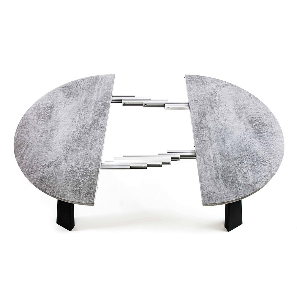Mesa de jantar redonda extensível até 370 cm em madeira melamina e metal.