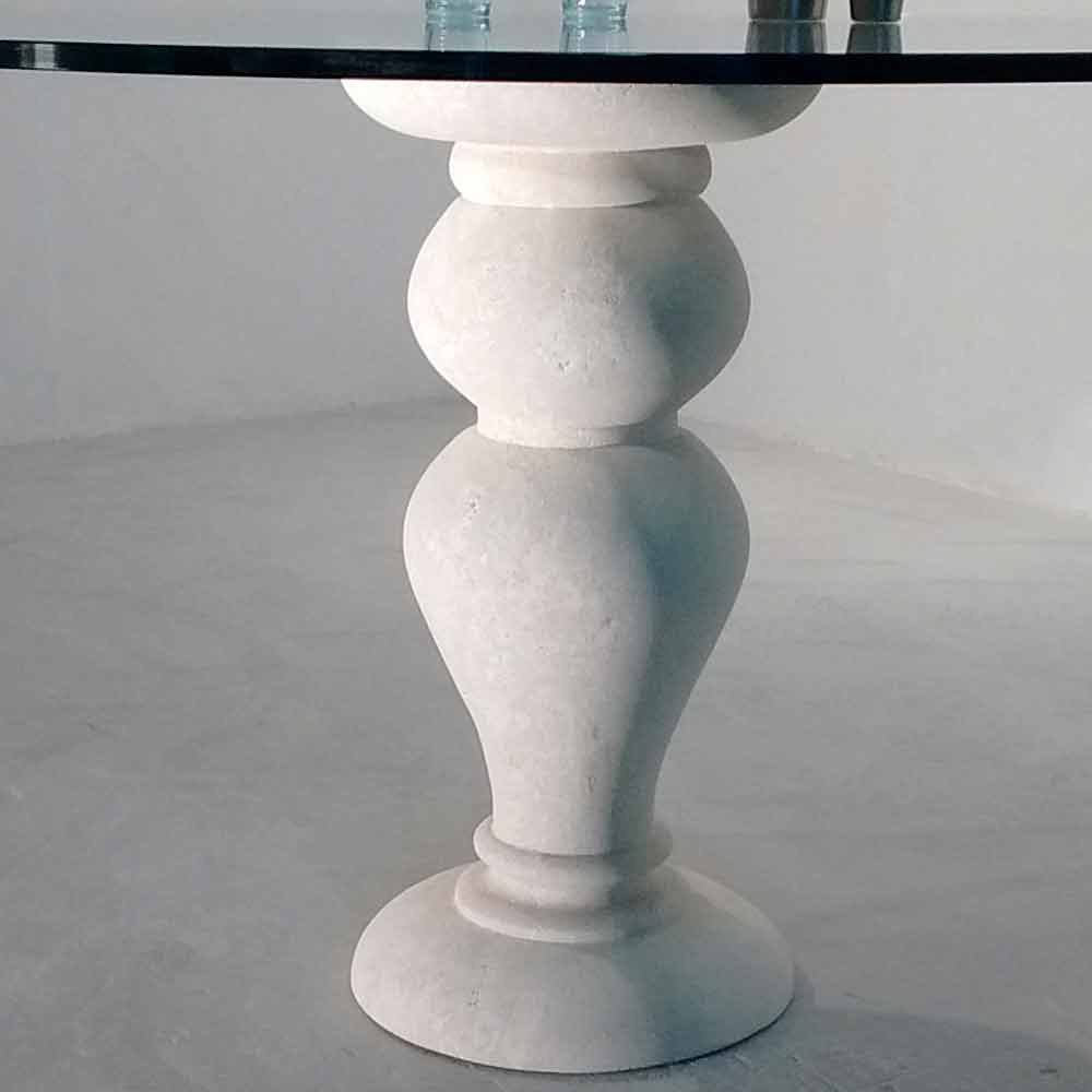 Mesa de jantar redonda feita de cristal e pedra natural Edipo